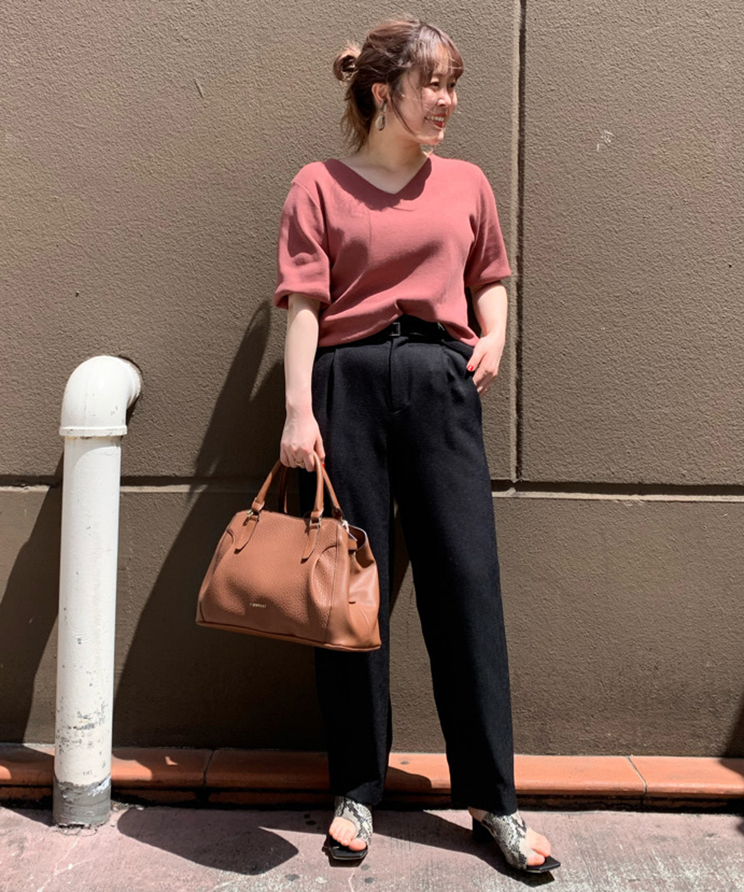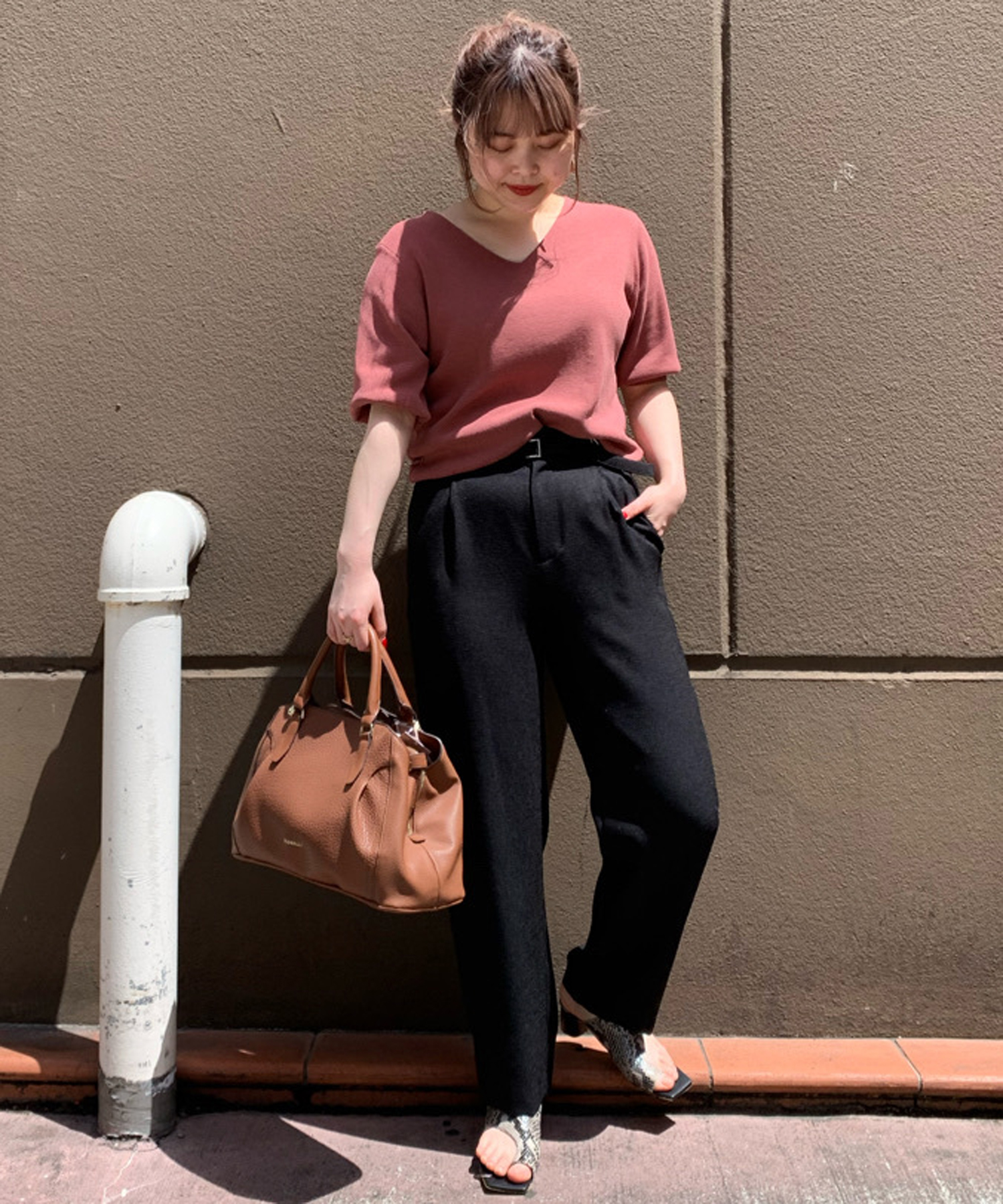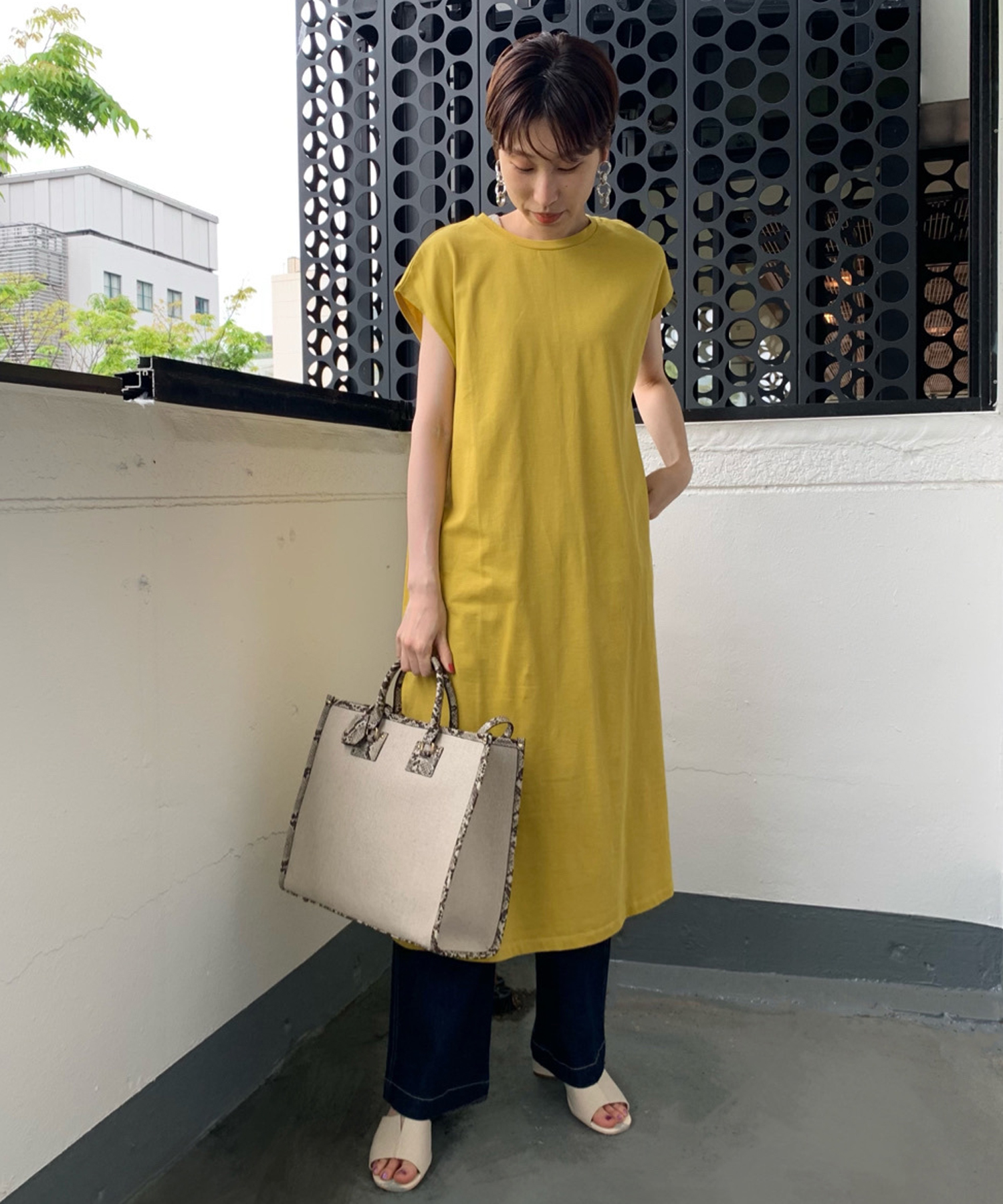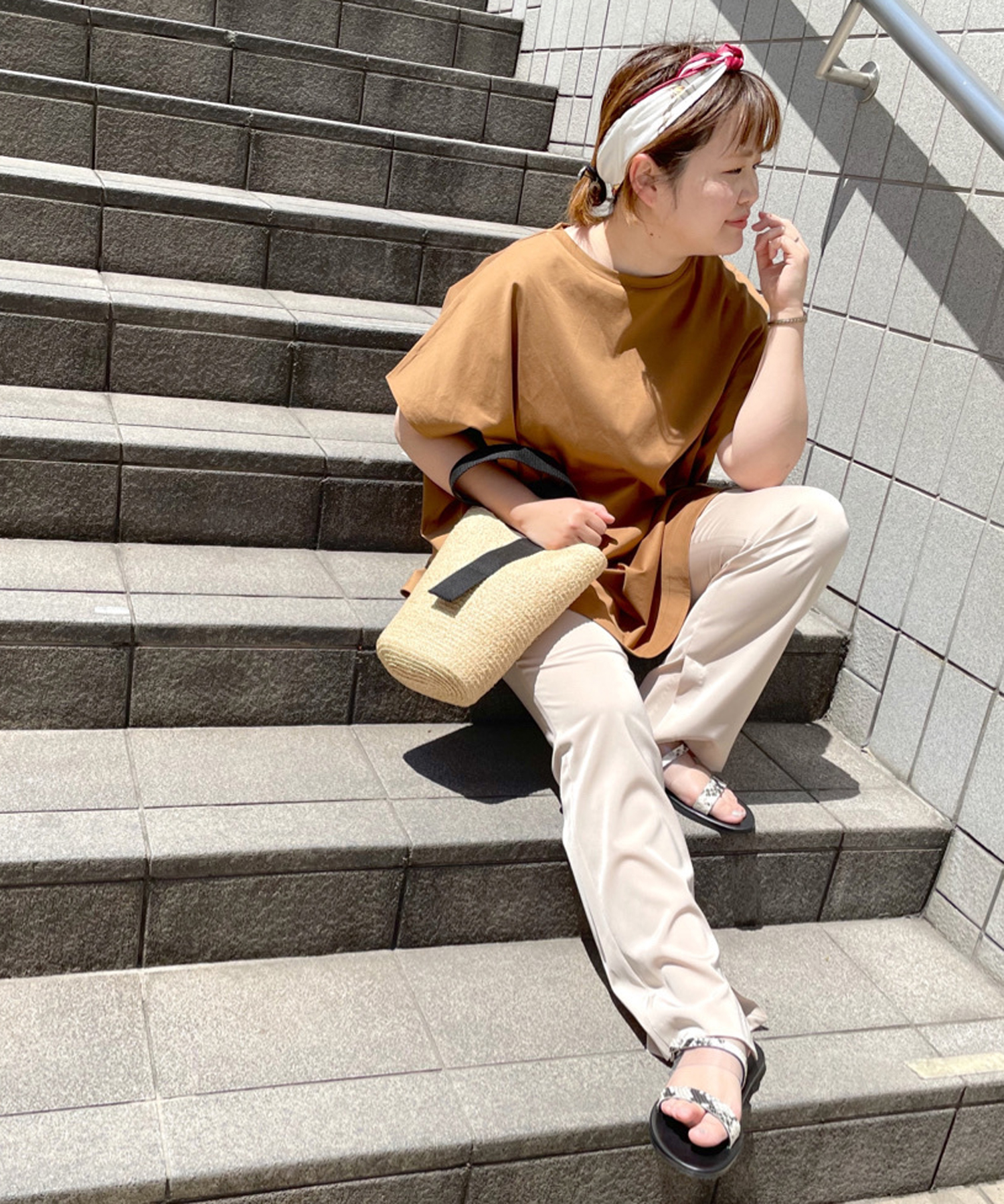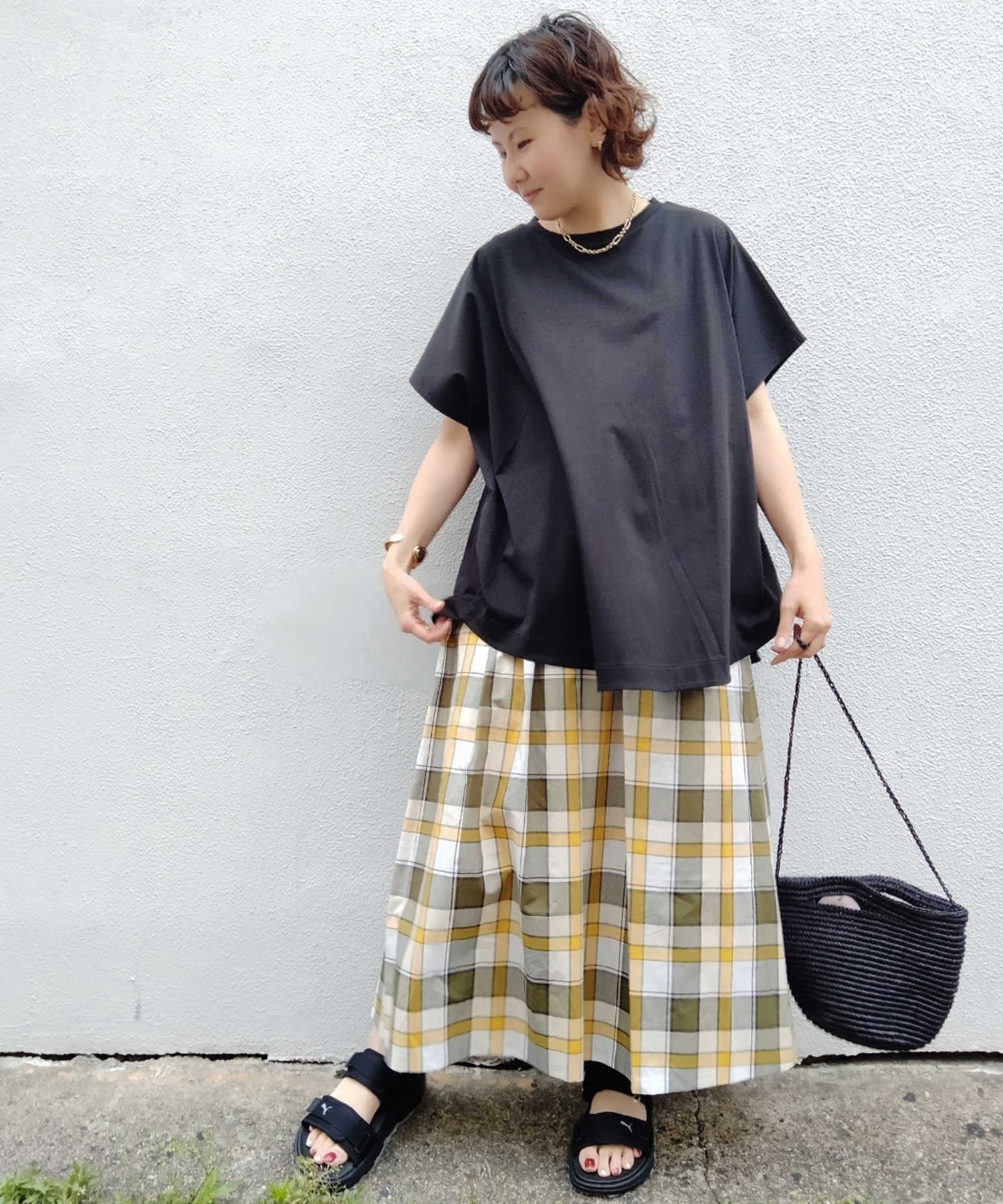 - ・程よいハリのある生地感と縦長シルエットで体型カバー◎