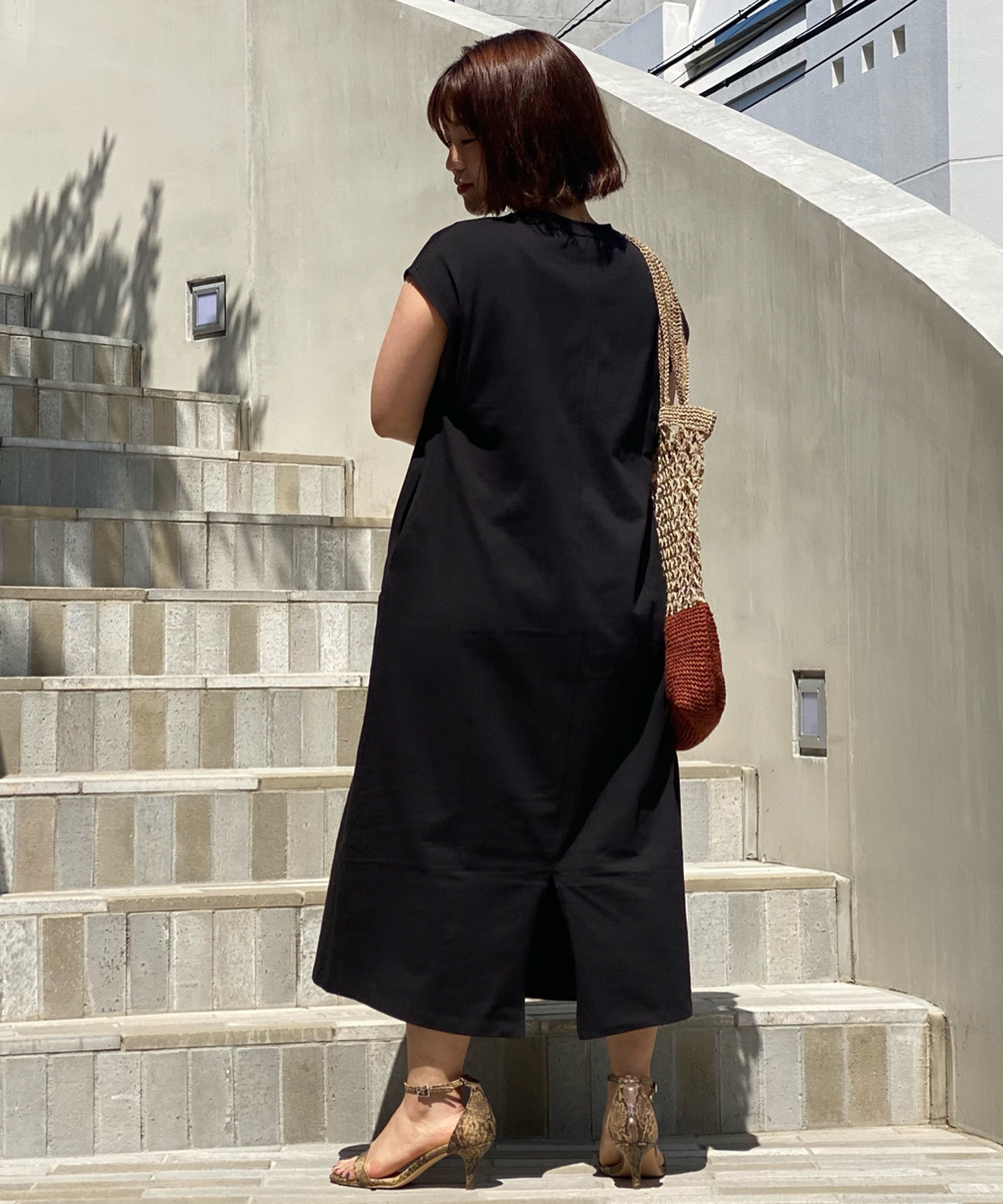 《予約》【《身長別で選べる》洗える】汗染み防止フレンチスリーブロングワンピース