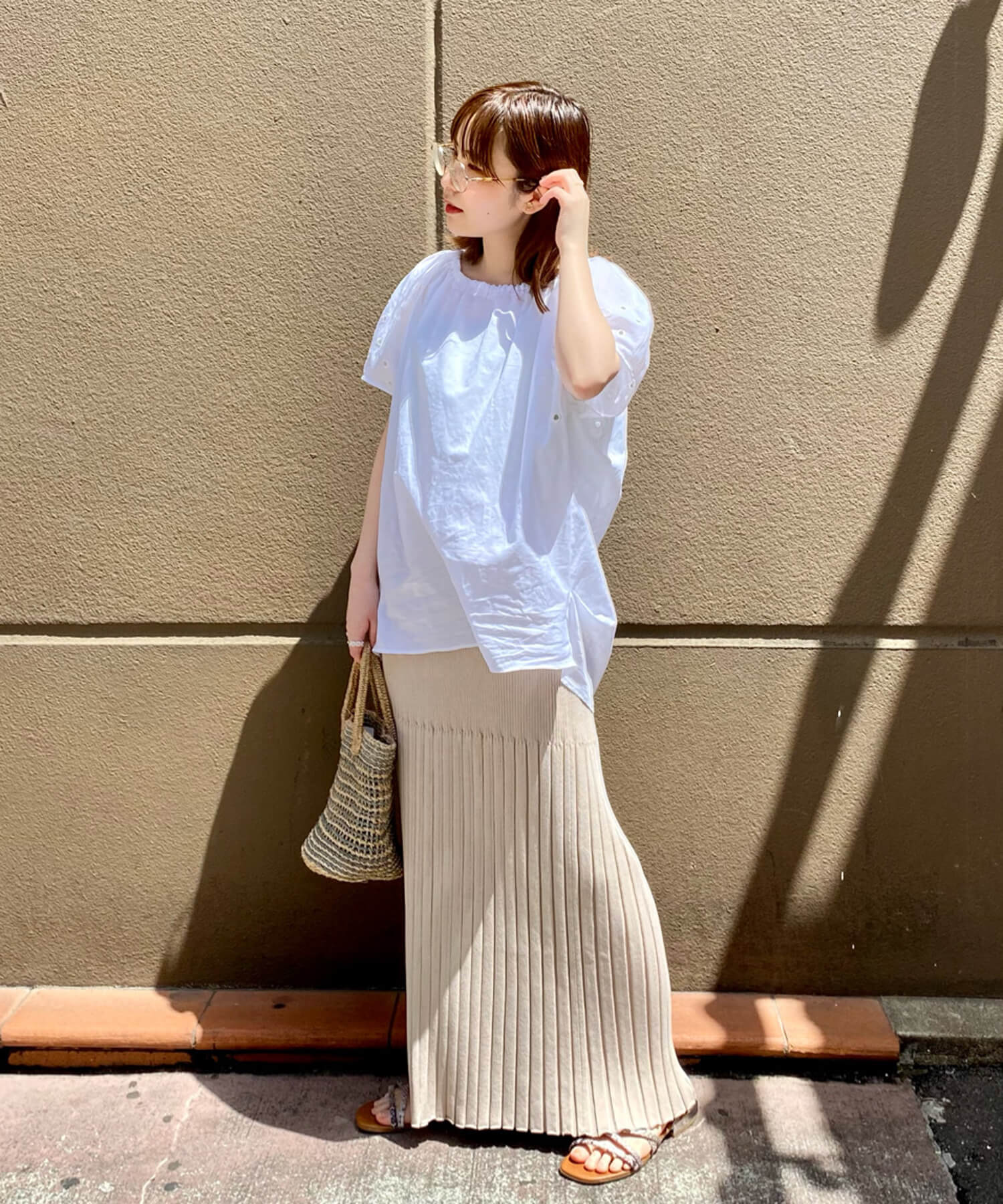 - ・脚見せの抜け感を作る裾スリットもポイント