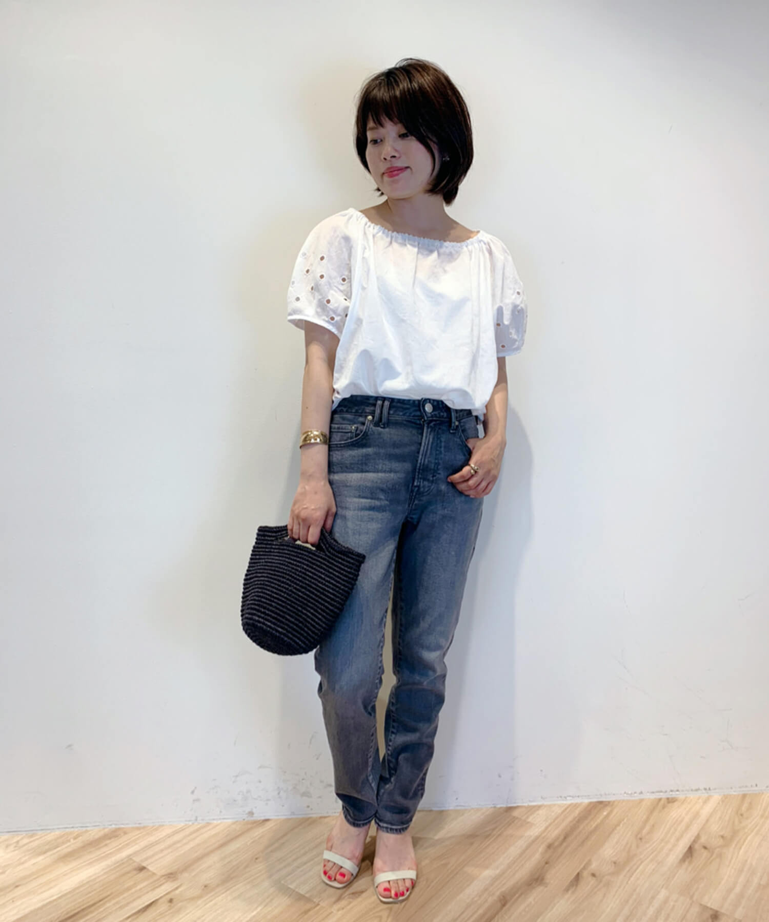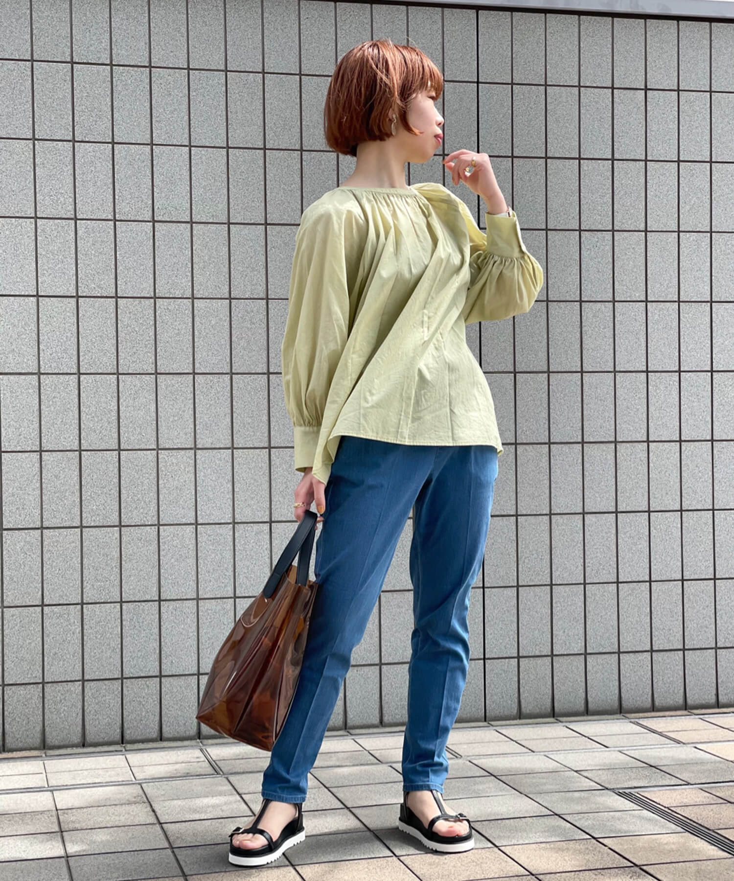 - ・肩を落としてオフショルダーやワンショルダーにする着こなしも楽しめます◎