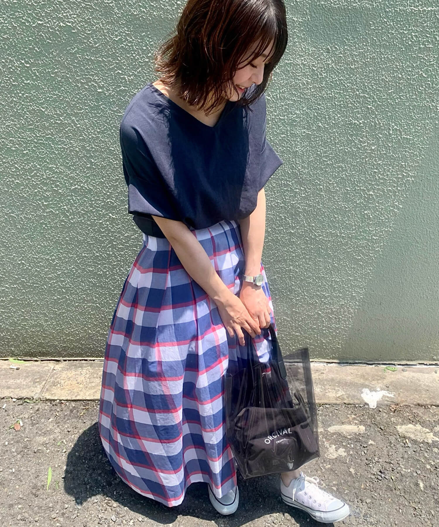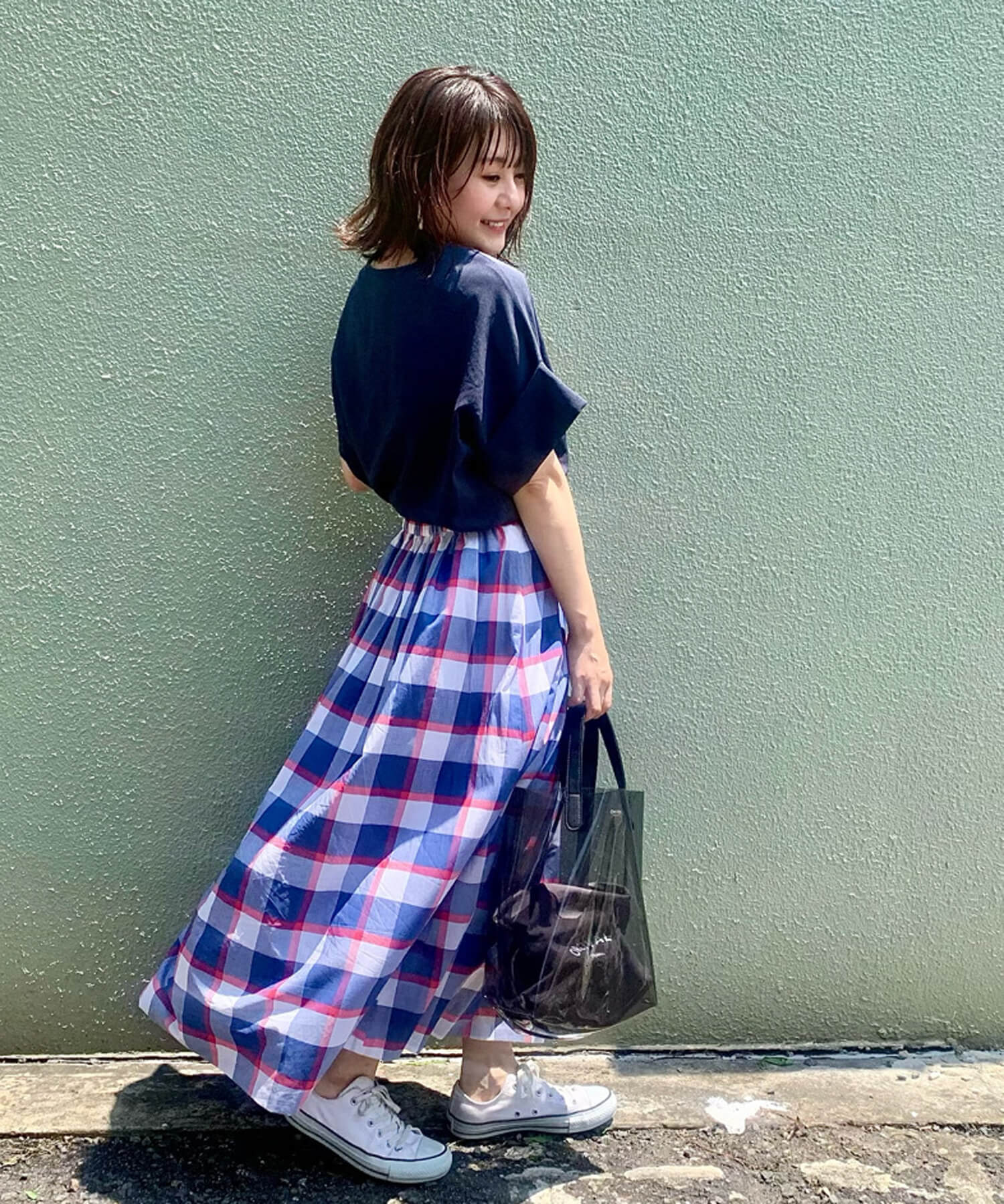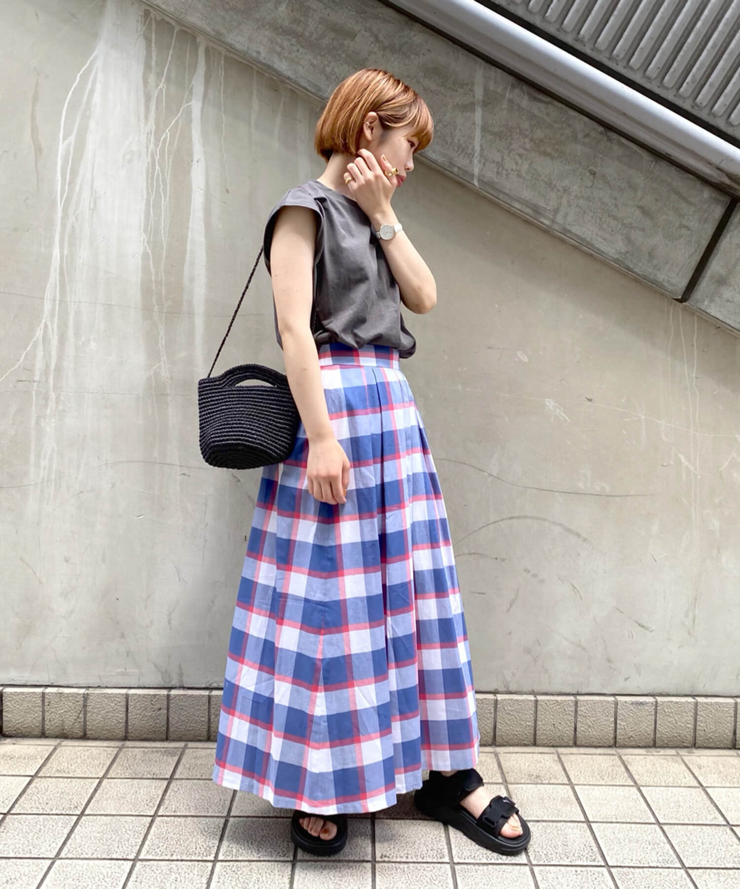 - ・トレンド感のある色鮮やかなチェック柄スカート。