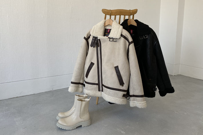 毎年大人気のALPHA INDUSTRIESのムートンジャケット。