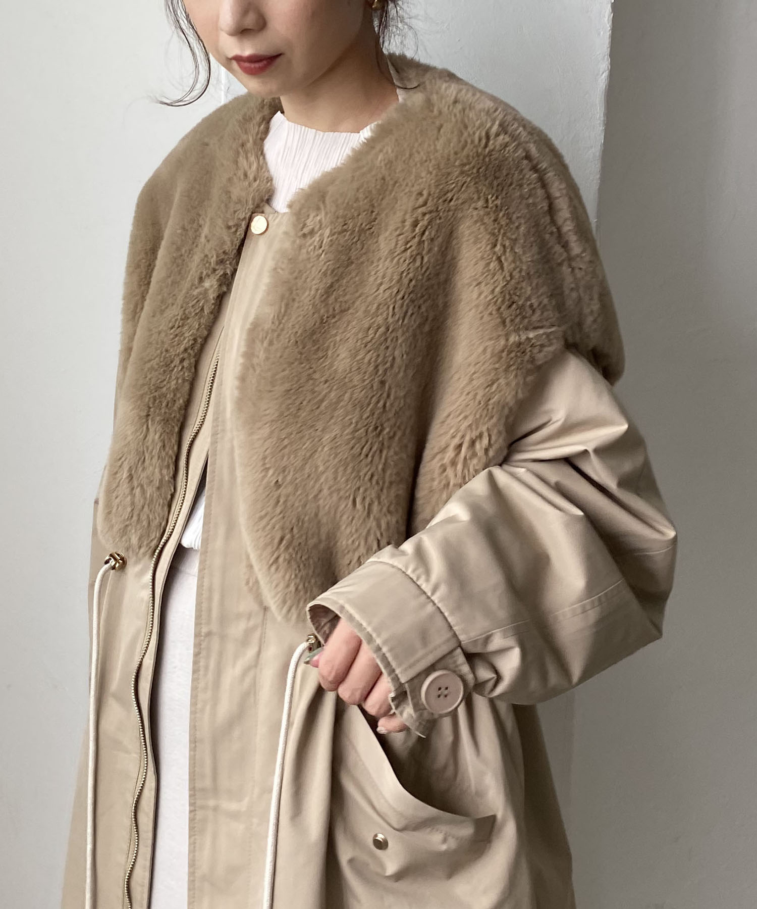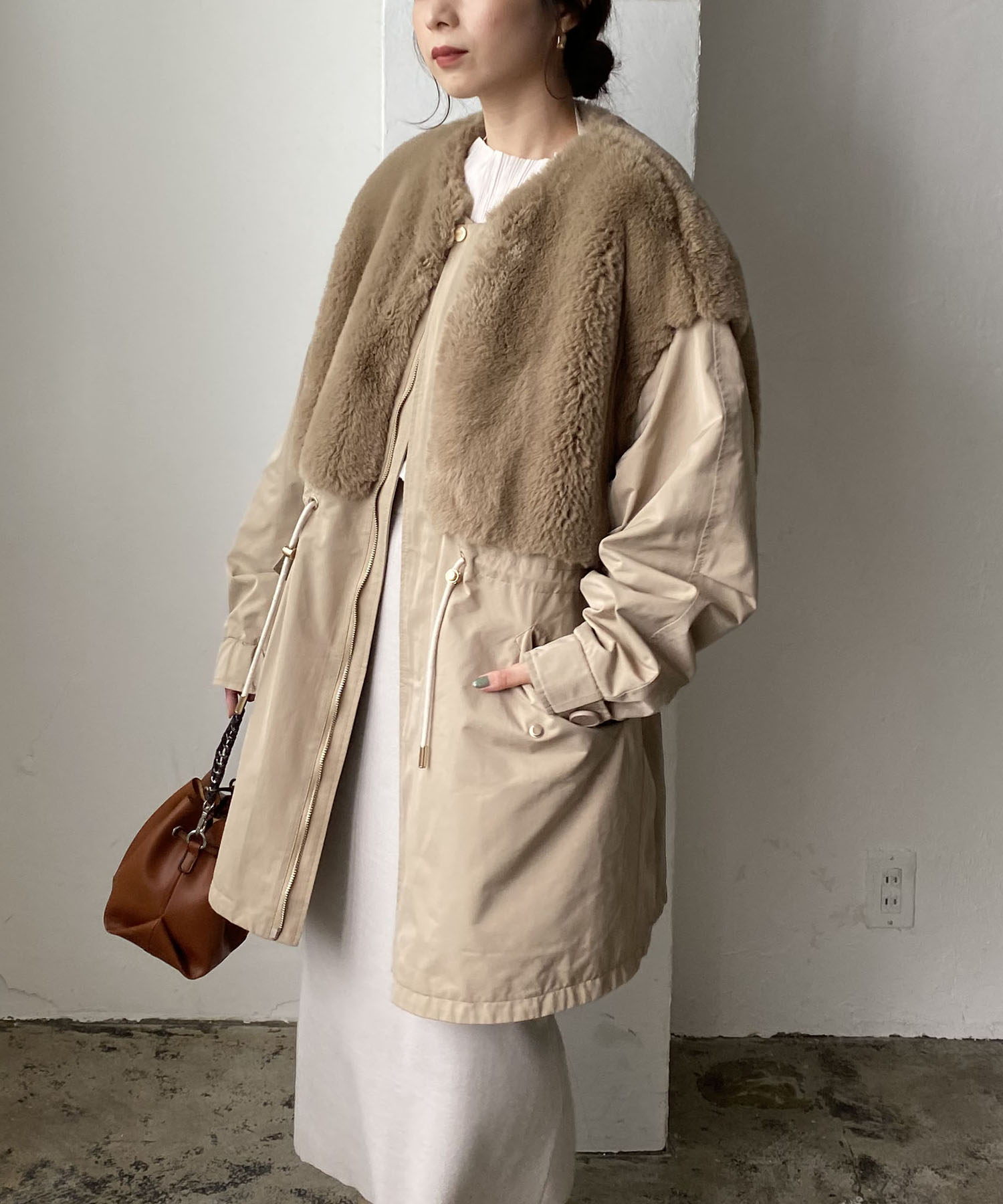身頃のファーが目を惹くデザイン。
