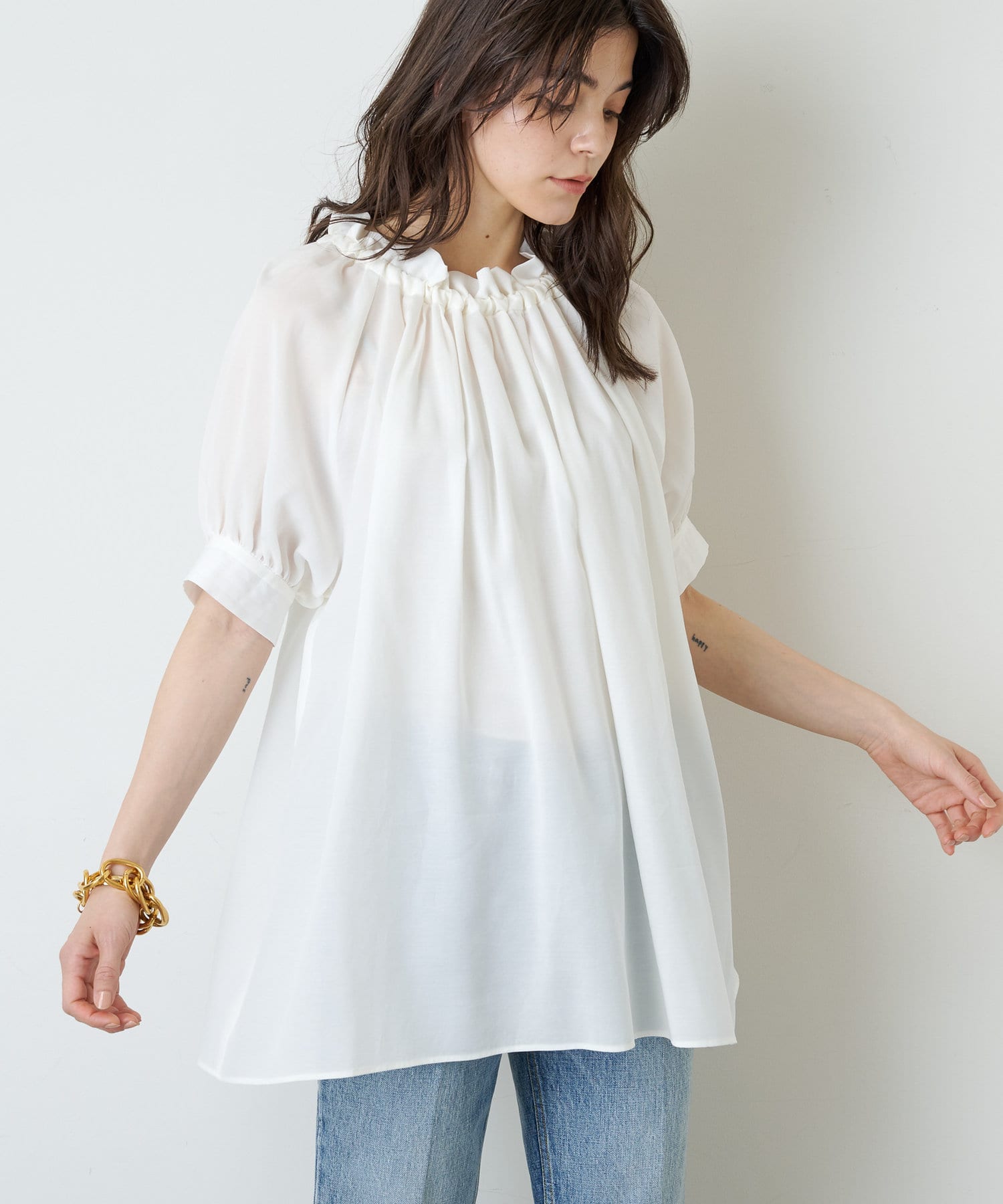 汗ばむ季節に嬉しい、さらっとドライタッチな着心地。ストレスフリーな肌ざわりも嬉しいポイントです。