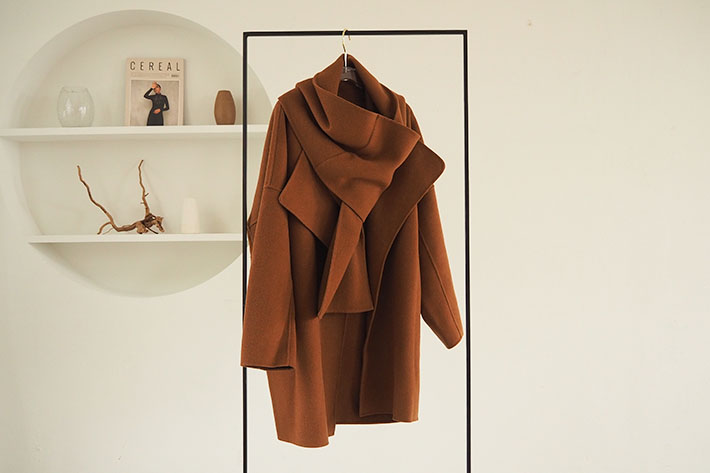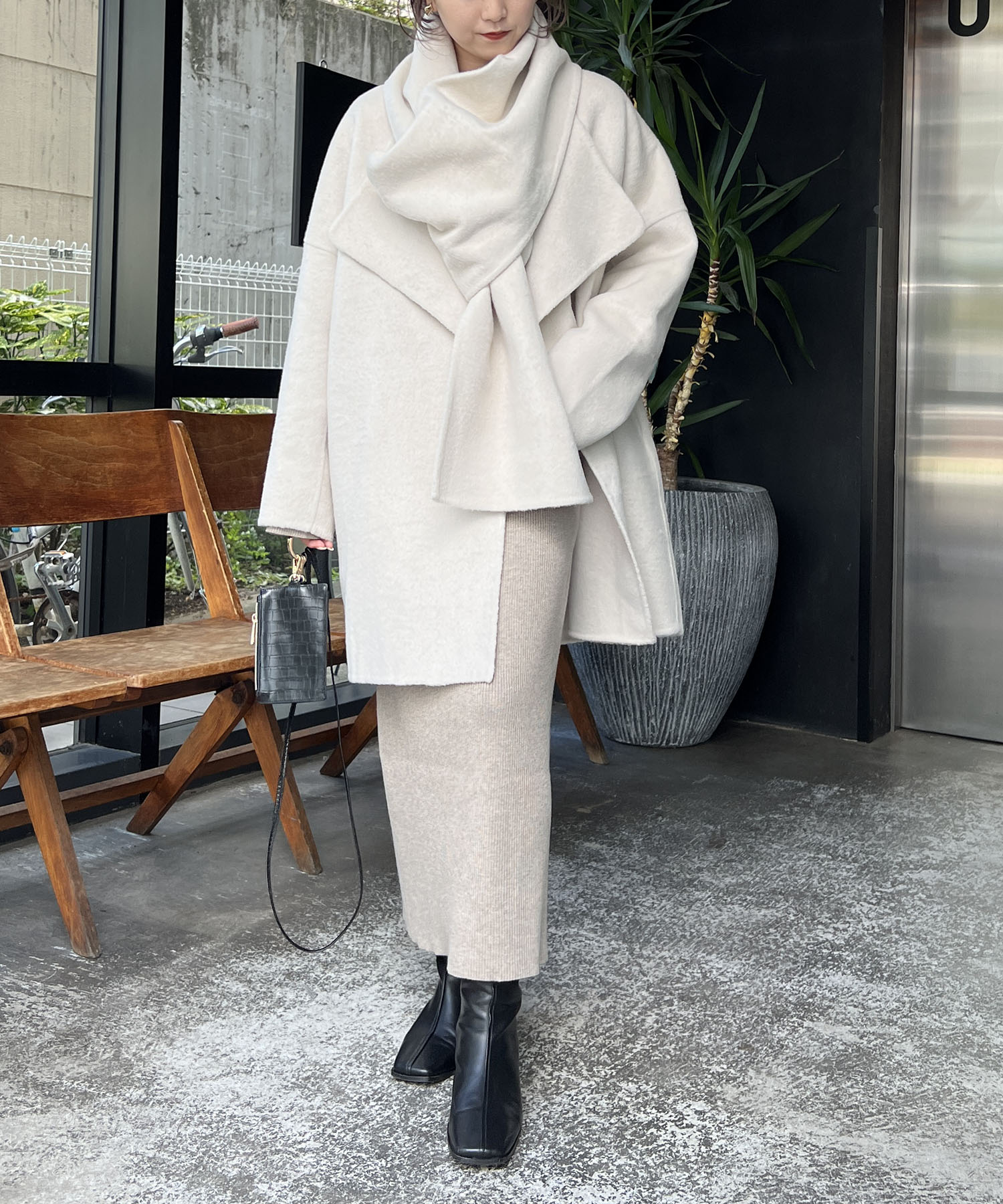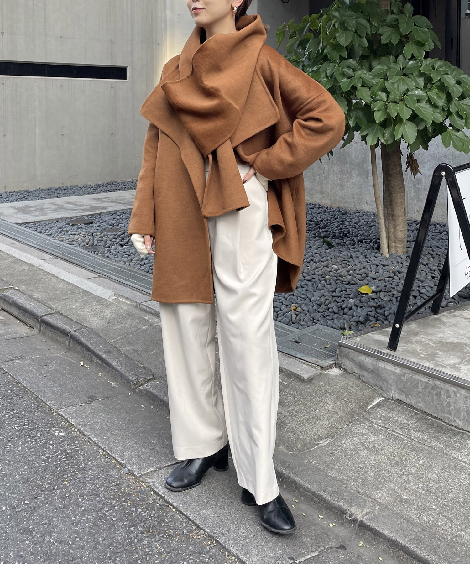 丸みのあるシルエットで女性らしく着られる1枚です。
