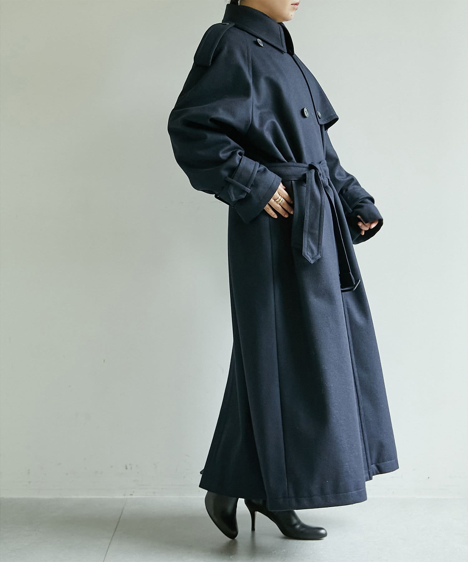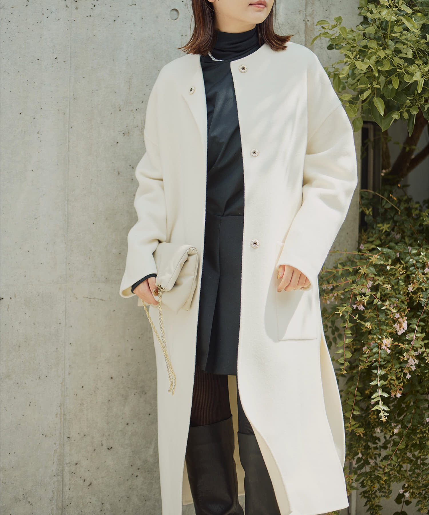 冬のスタイルの印象を決定づけるコート。