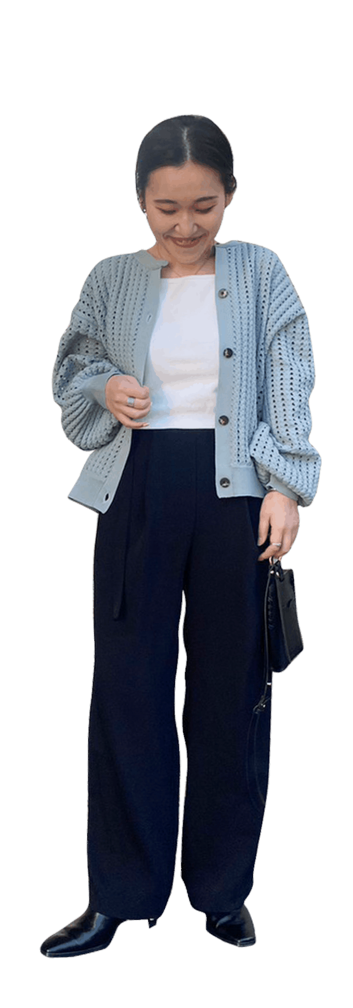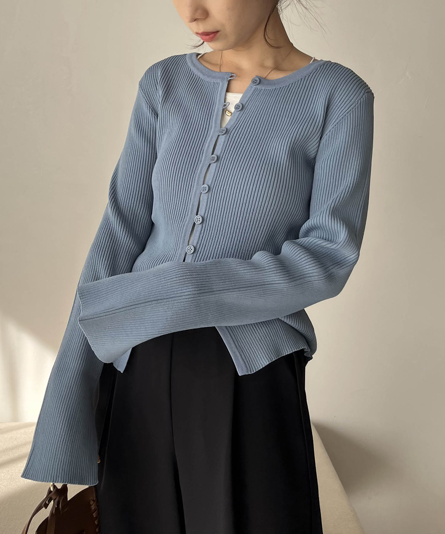 トレンド感満載のカラーで気分があがるカーディガンと、 レマージュ通な方はマストバイしていただきたいストレートパンツを選びました。 カーディガンはかなり薄手ですがハリのあるポリエステルで着崩れしにくく1枚でサマになります。 キャミワンピースやスカート合わせもおすすめ。 パンツはウエストにベルトがついていてワンポイントになります。 落ち感があるストレートパンツはTPO問わず重宝しますよ!