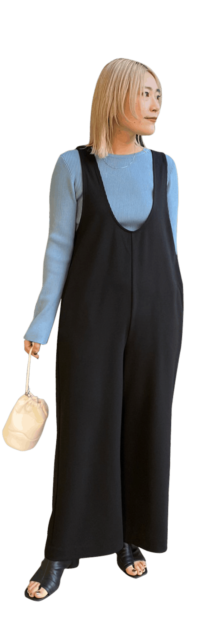 私のリアルバイ候補のアイテムを組み合わせたコーデです^^ ロンパースは伸縮性がありとっても楽な着心地なのに、きちんと見えするところがお気に入り! インナーを変えてロングシーズン着回せますよ! 中に着たトップスは春らしいカラーがポイント。 前後2wayで気分を変えて使えるのも◎