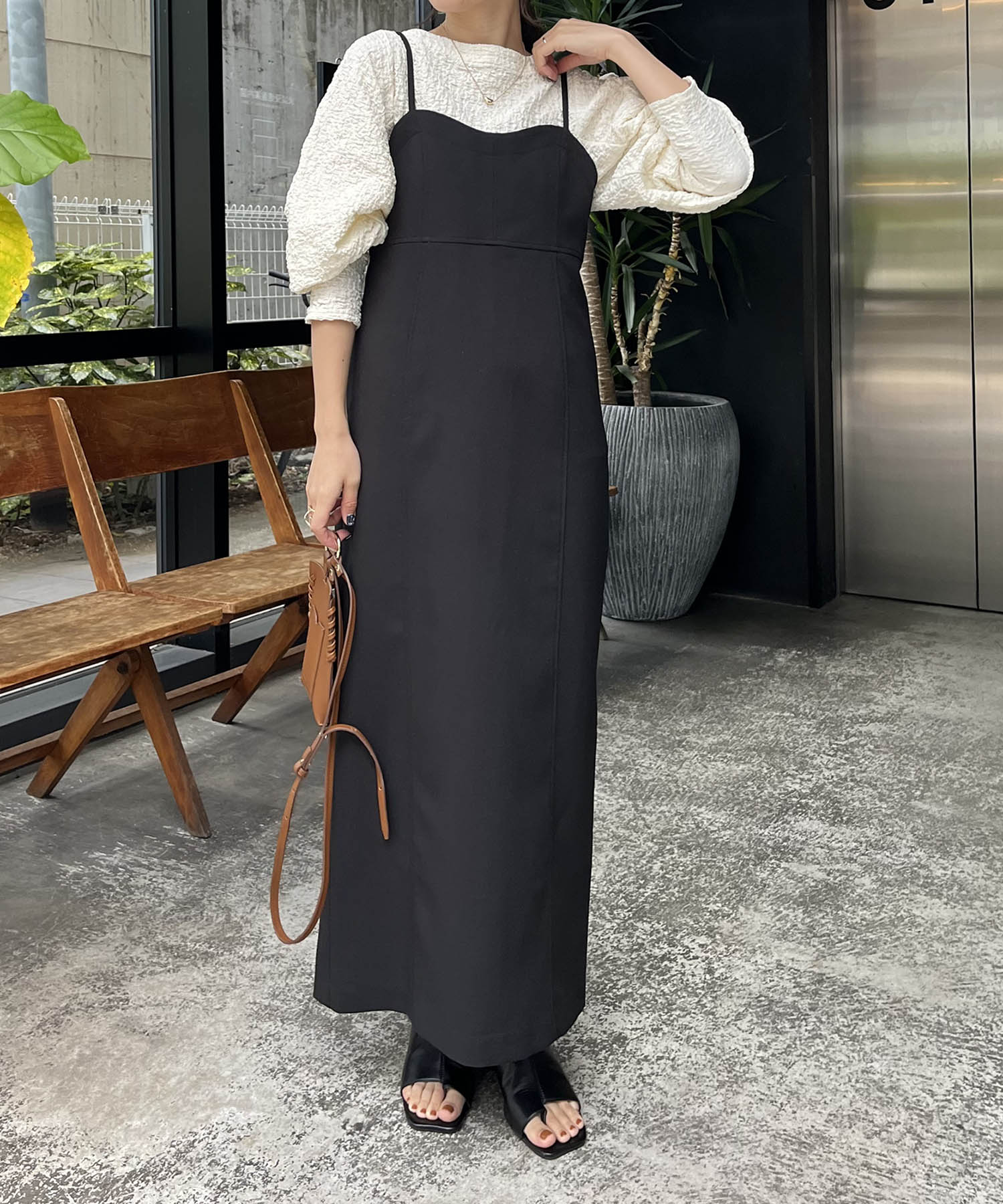 オールシーズンで活躍が期待出来るキャミワンピースは絶対欲しい1着♡ 私自身骨格ウェーブでハイウエストデザインはマストなので、胸下の切り替えがありがたいです! シャツはキャミソール合わせで夏にヘルシーに着たい! デザイン性とハリ感がある素材なのが羽織りスタイルも様になりますよね☺