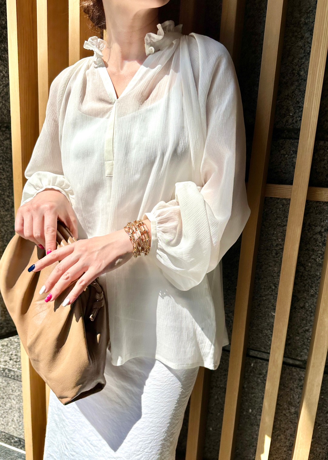 ヘルシーな肌見せに挑戦したい今シーズンの気分にぴったりハマったブラウス。