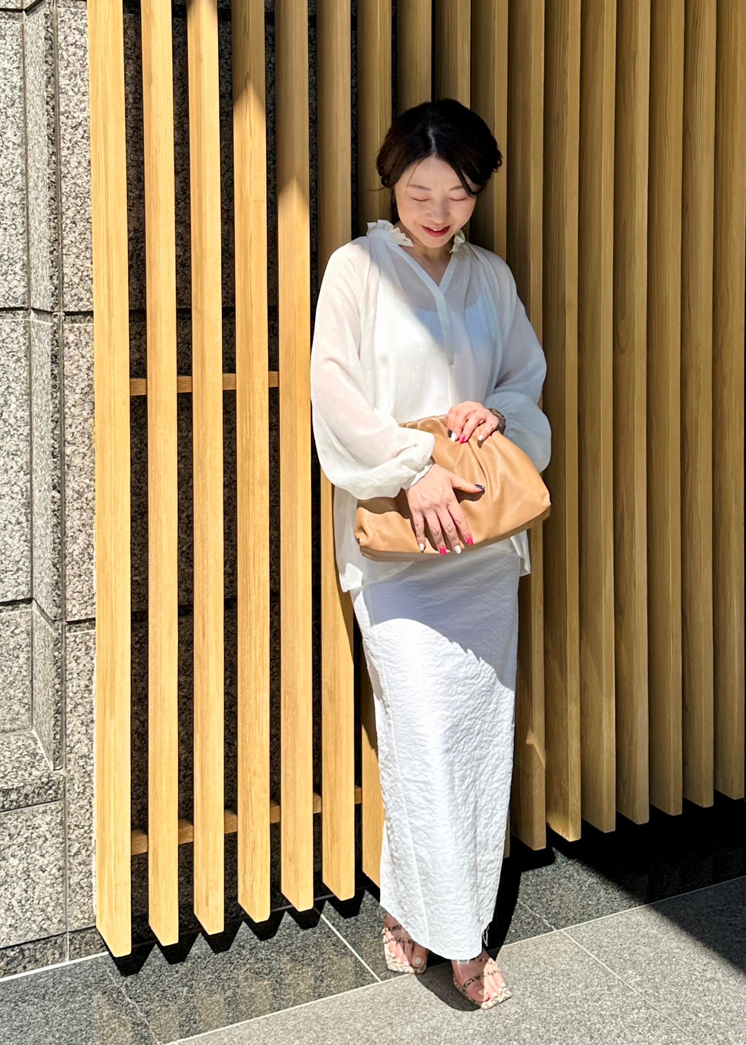 他にはなくてお気に入り。リアルバイしたフェミニンなロングワンピースと合わせて、