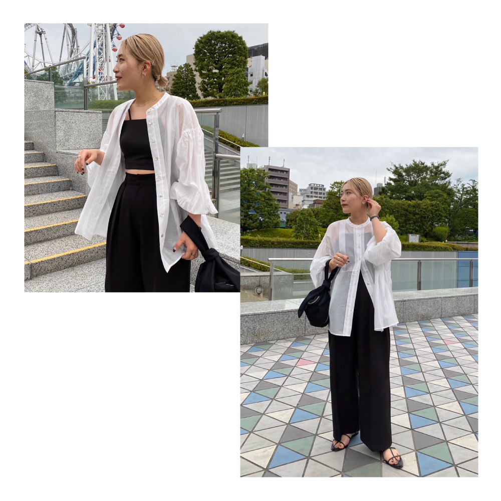 夏の日除けや冷房対策にもぴったりのシアーシャツ。