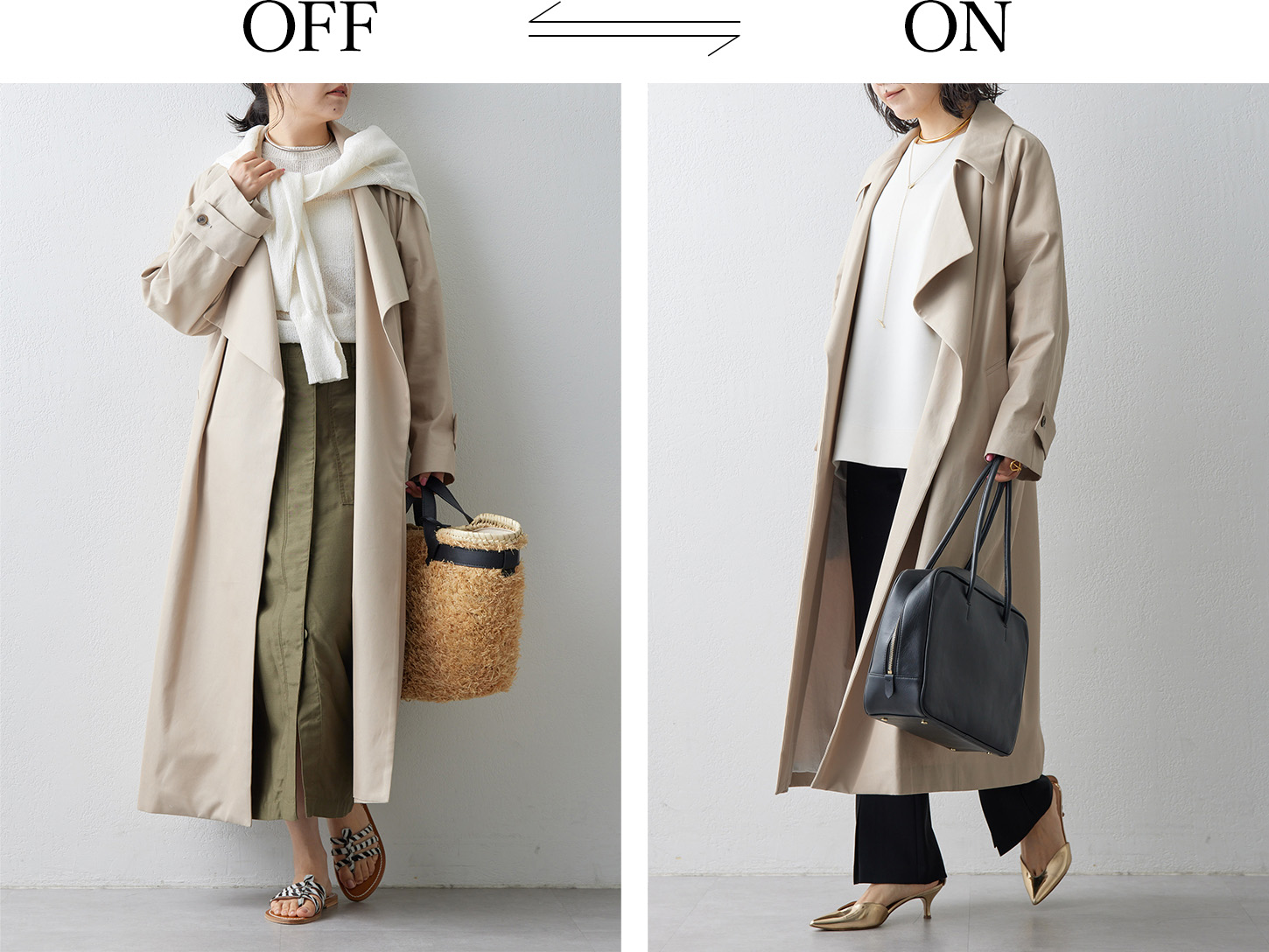 ラフな抜け感で大人カジュアルに着こなせるミリタリーコートからワークスタイルにも活躍するトレンチコートまで、ワードローブに新しい風を吹き込む3つのコートを厳選。着回しコーディネートとともにご紹介します。