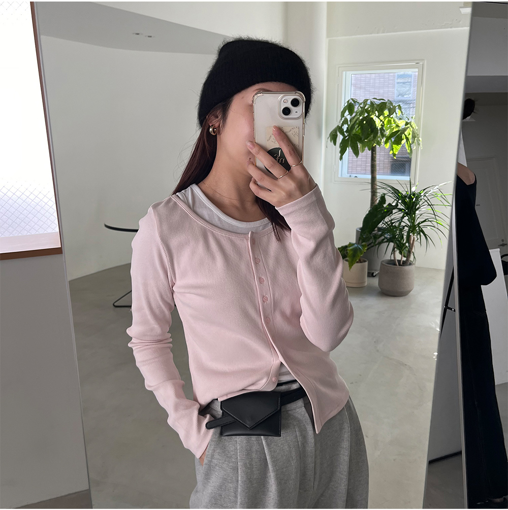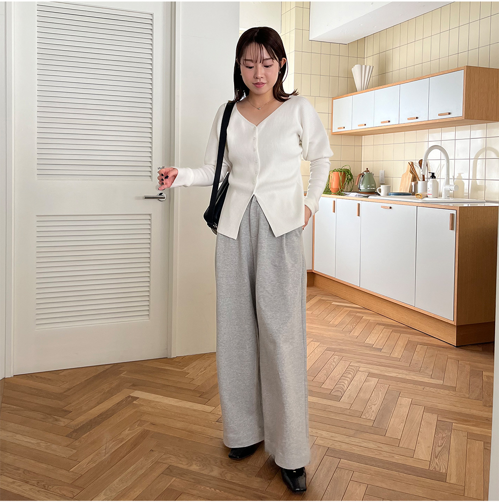 伸縮性の良いリブカーディガン。