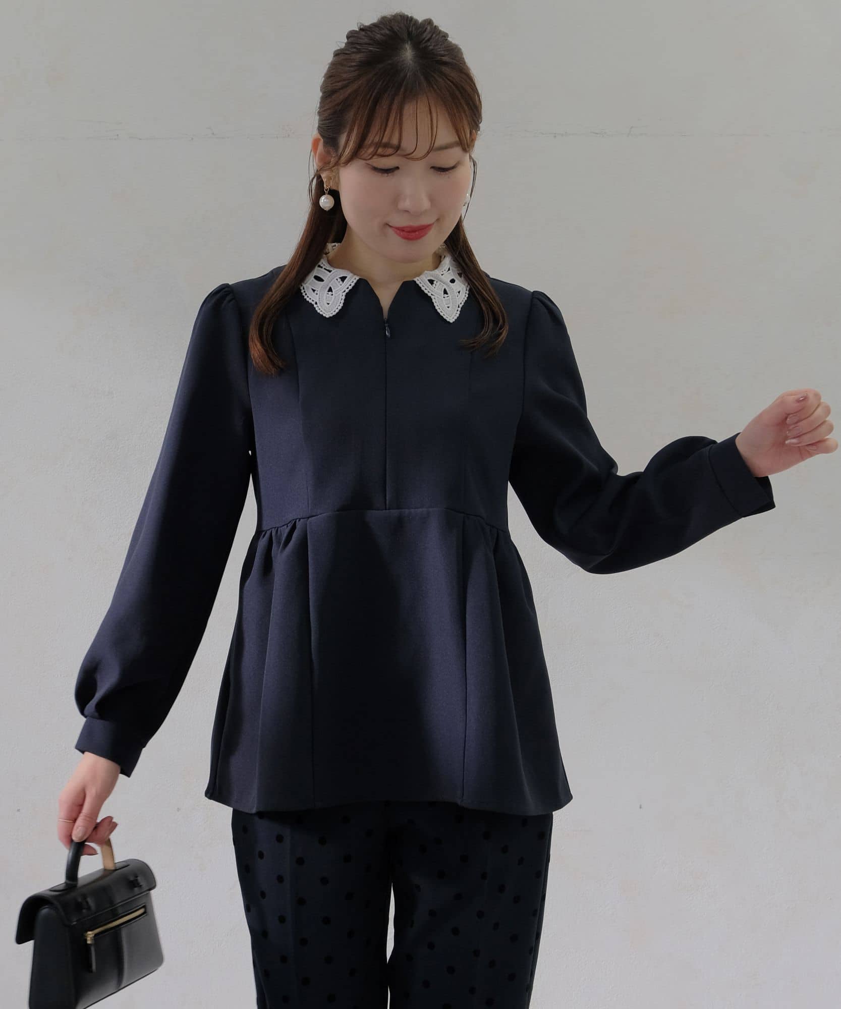 【 MAYURI 企画アイテム 】付け襟フロントZIPペプラムブラウスをご紹介♪