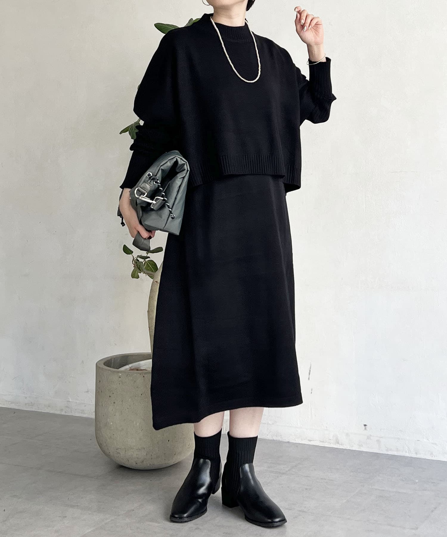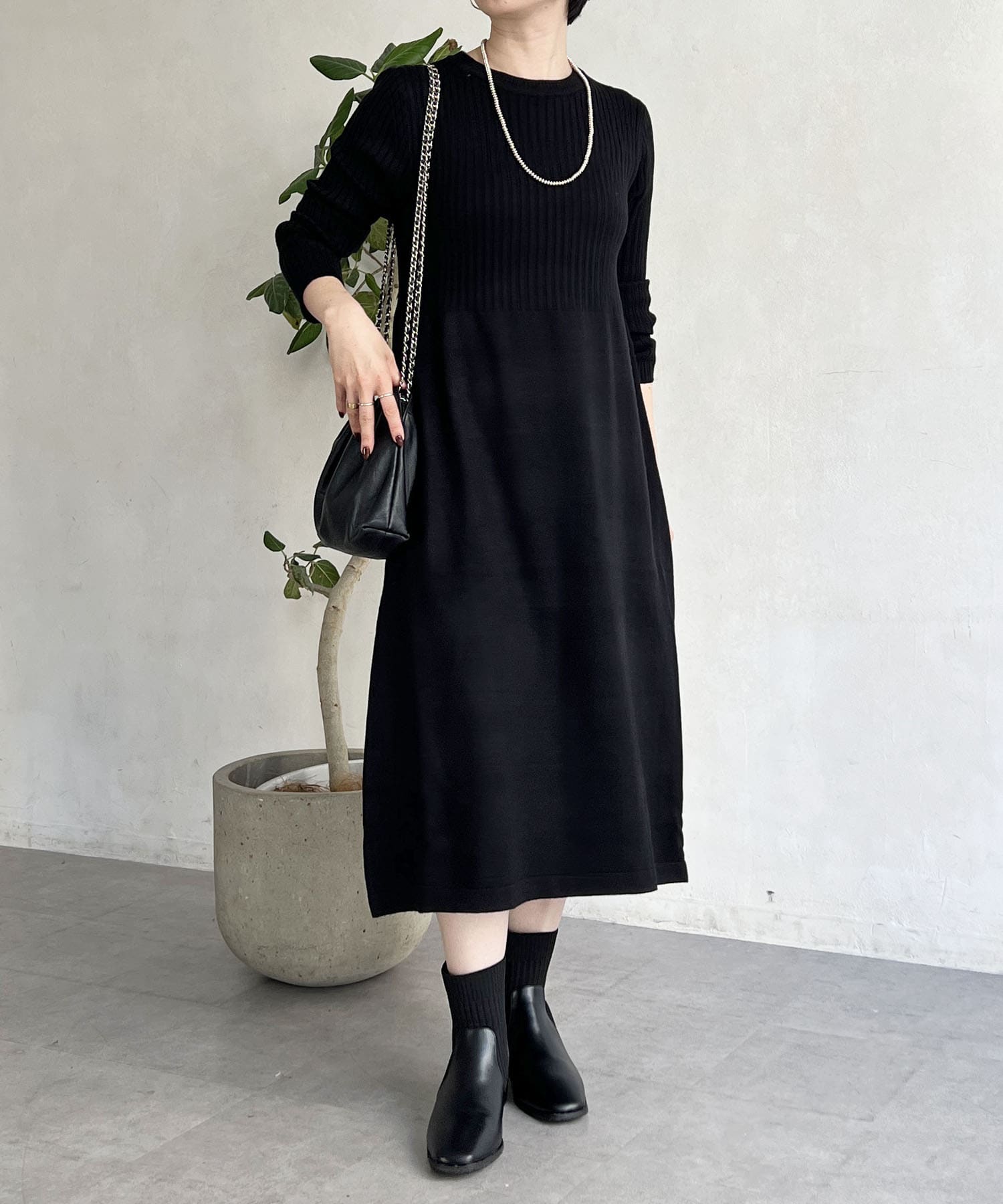 引き締め効果でスタイルアップが叶うブラックは、大人女性の強い味方。