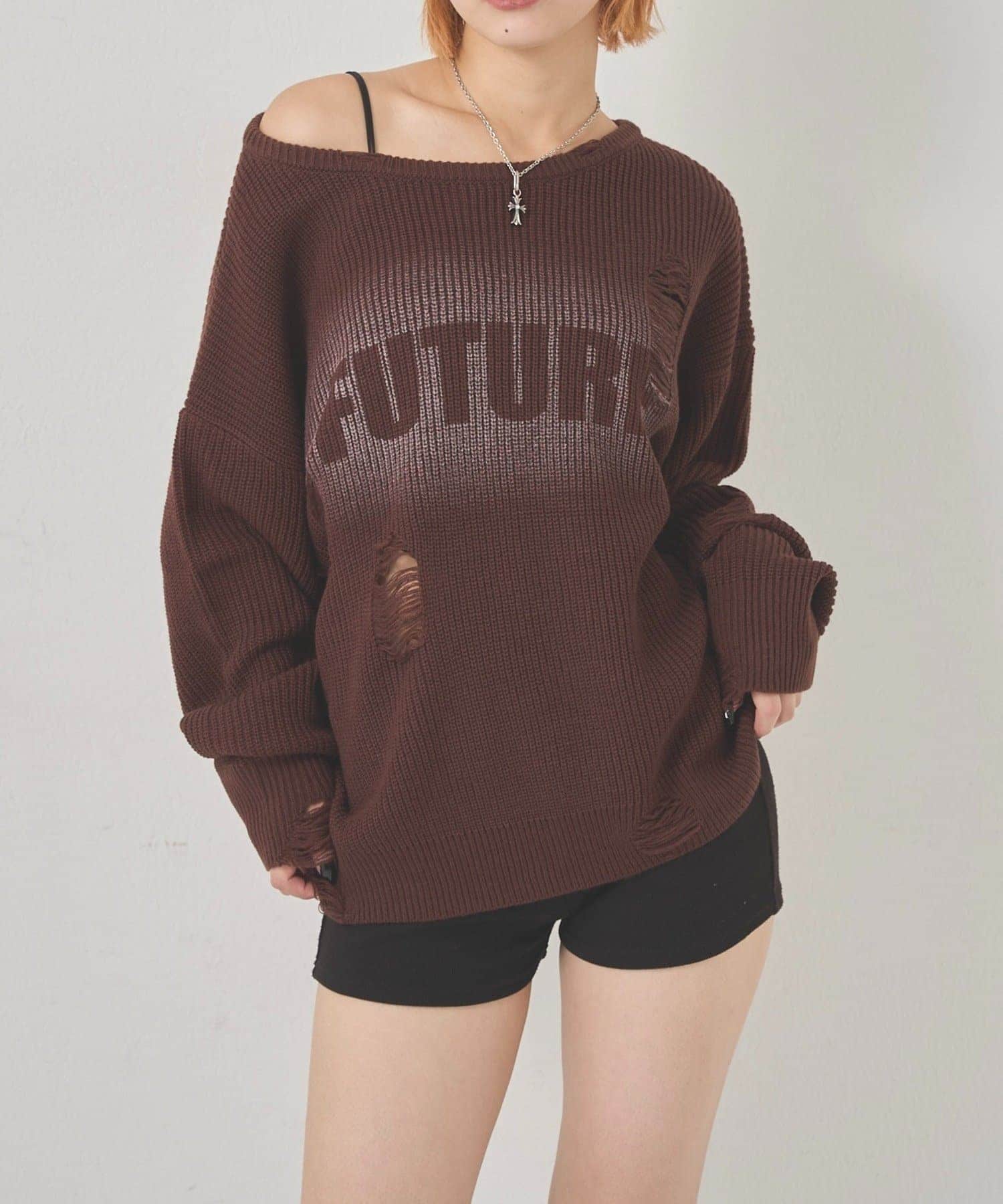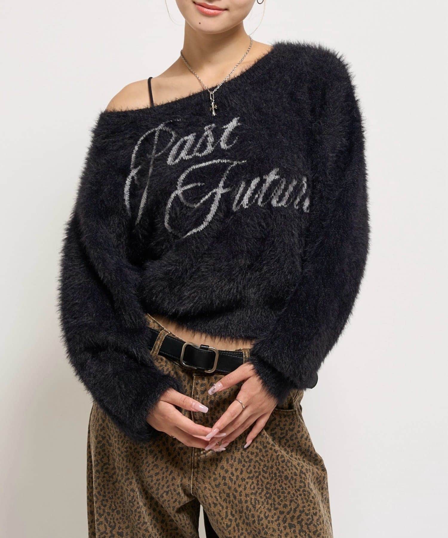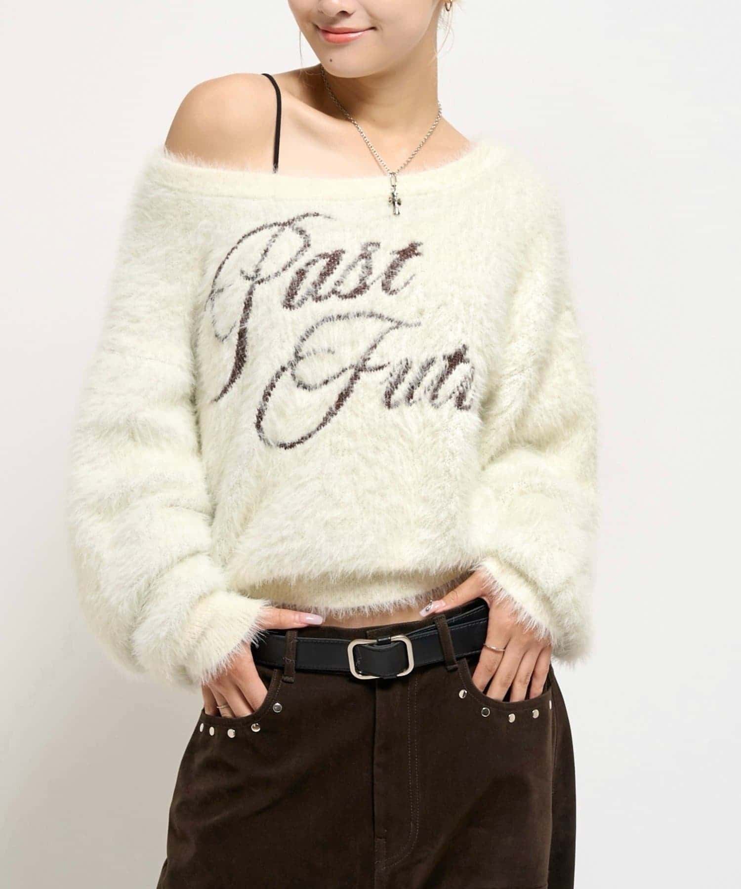 シャギーロゴオフショルニット