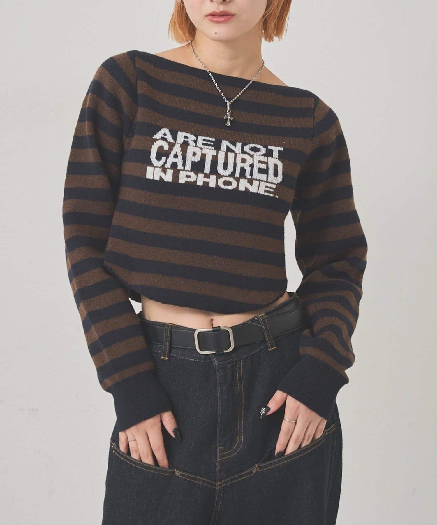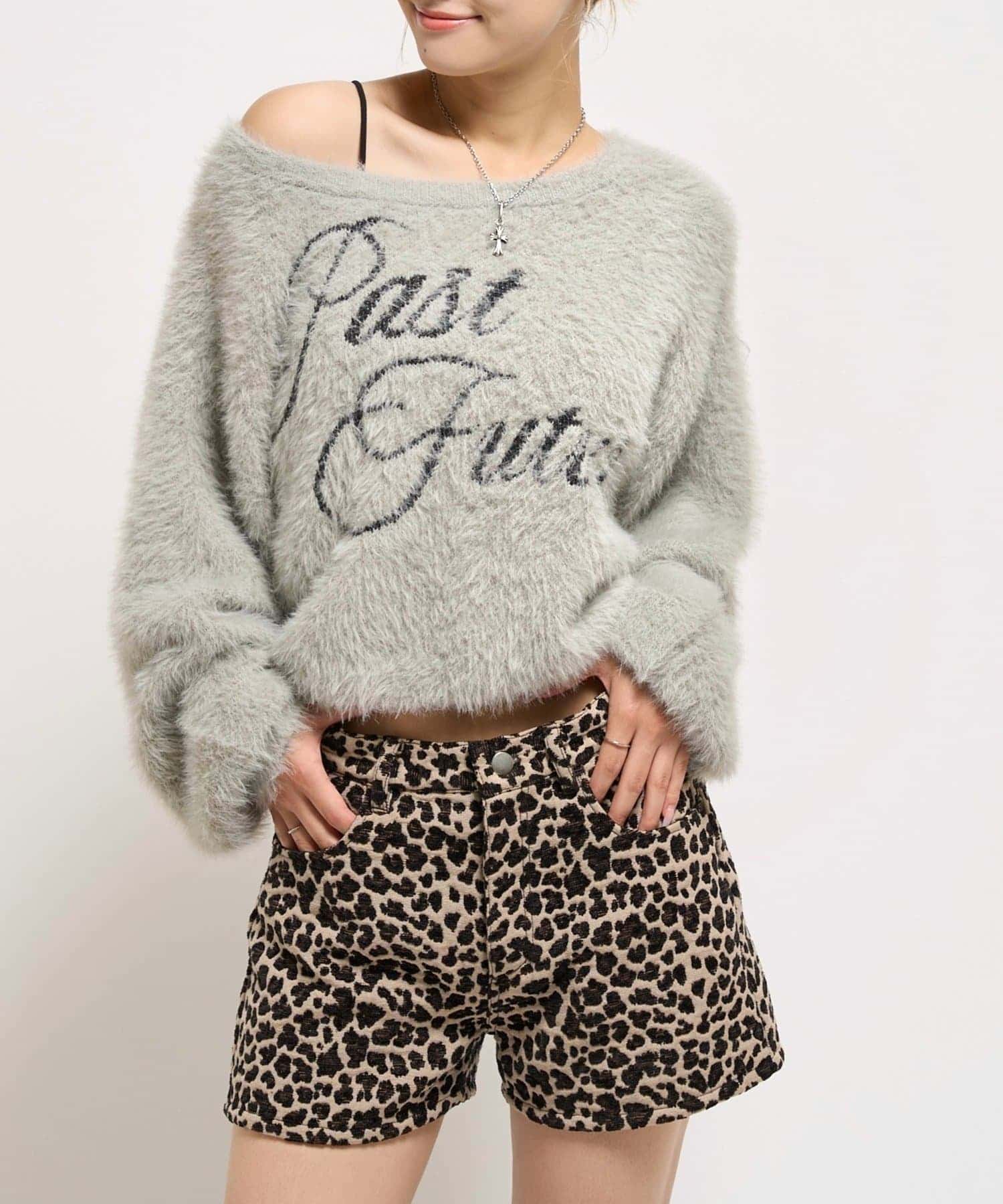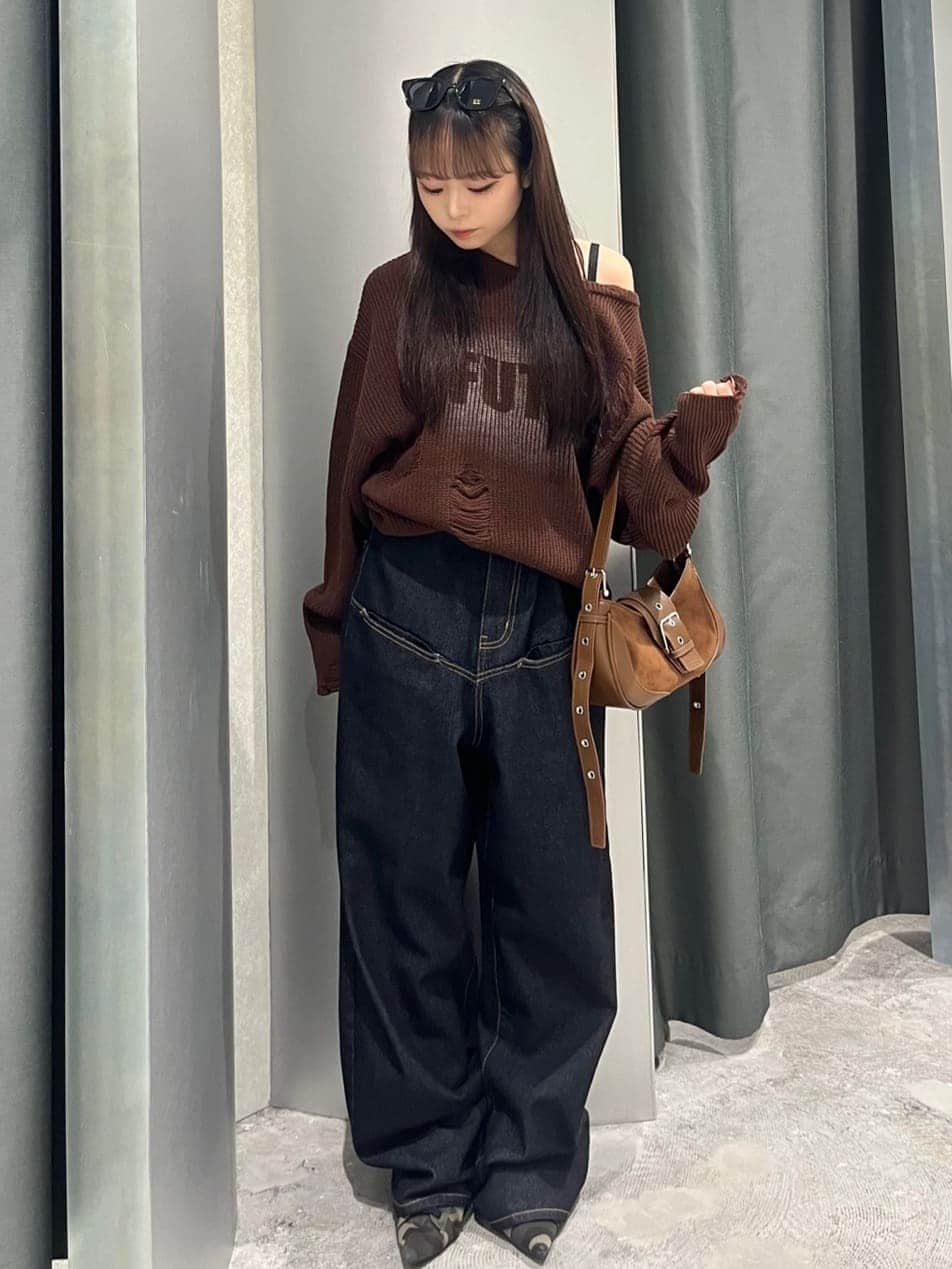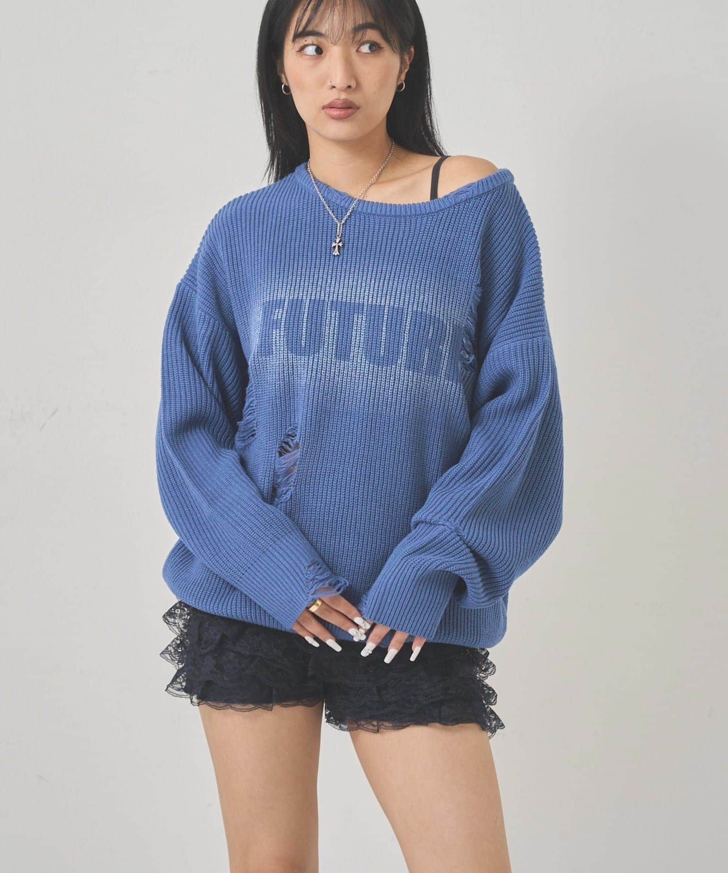 シャギーロゴオフショルニット