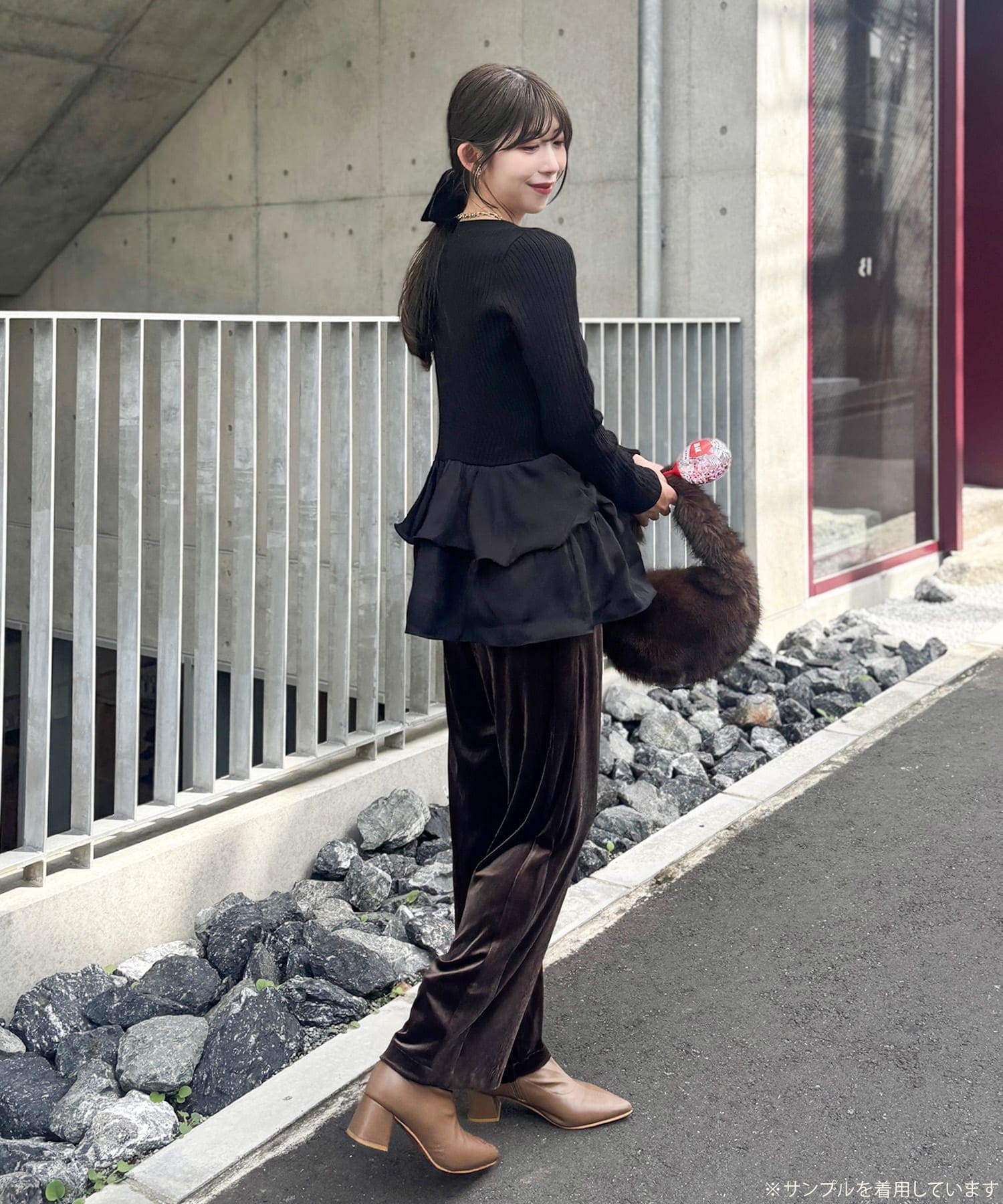 今季注目の「yurie企画シリーズ」からは、前後2WAYで楽しめるペプラムフリルニットやフェザーベストが登場。