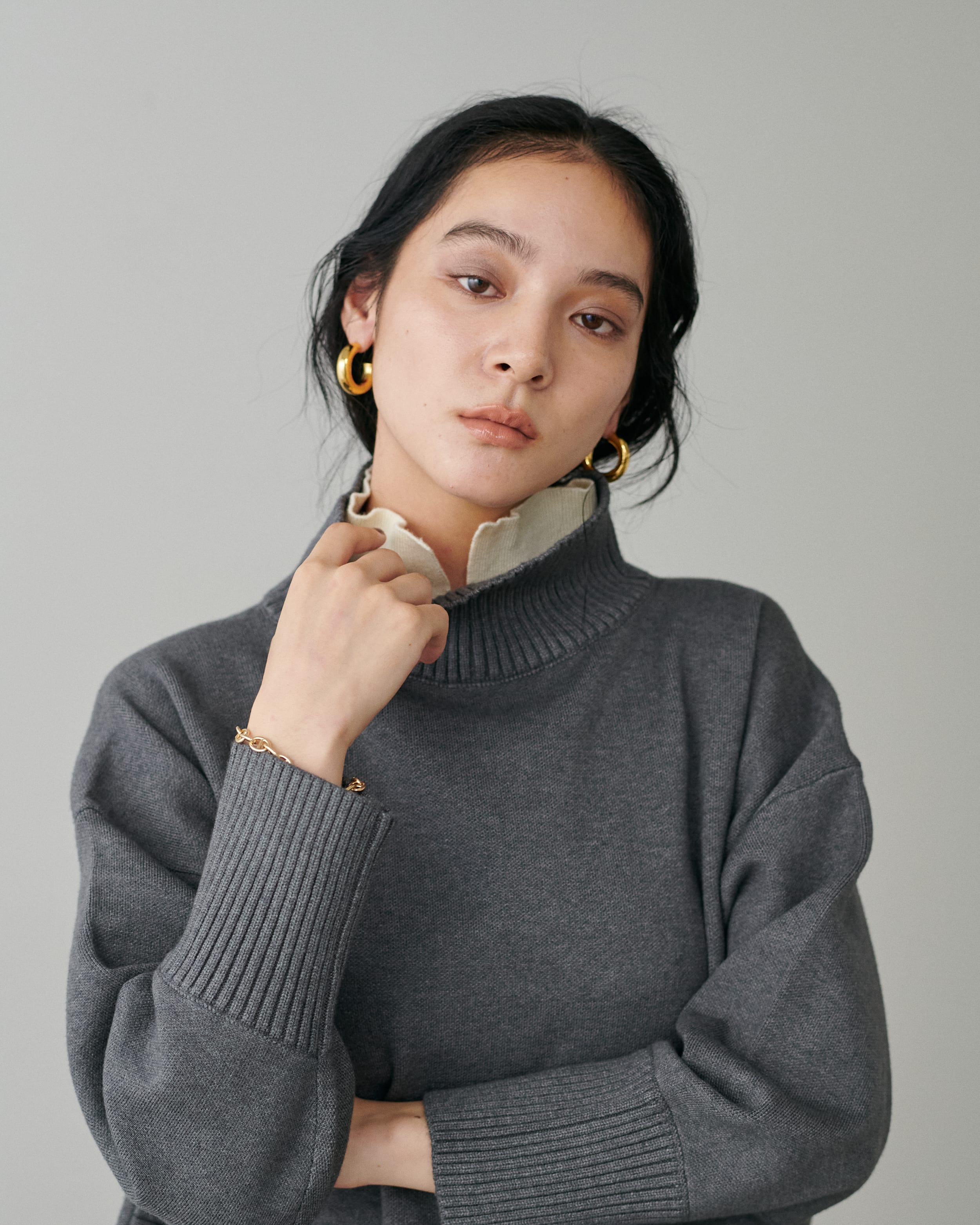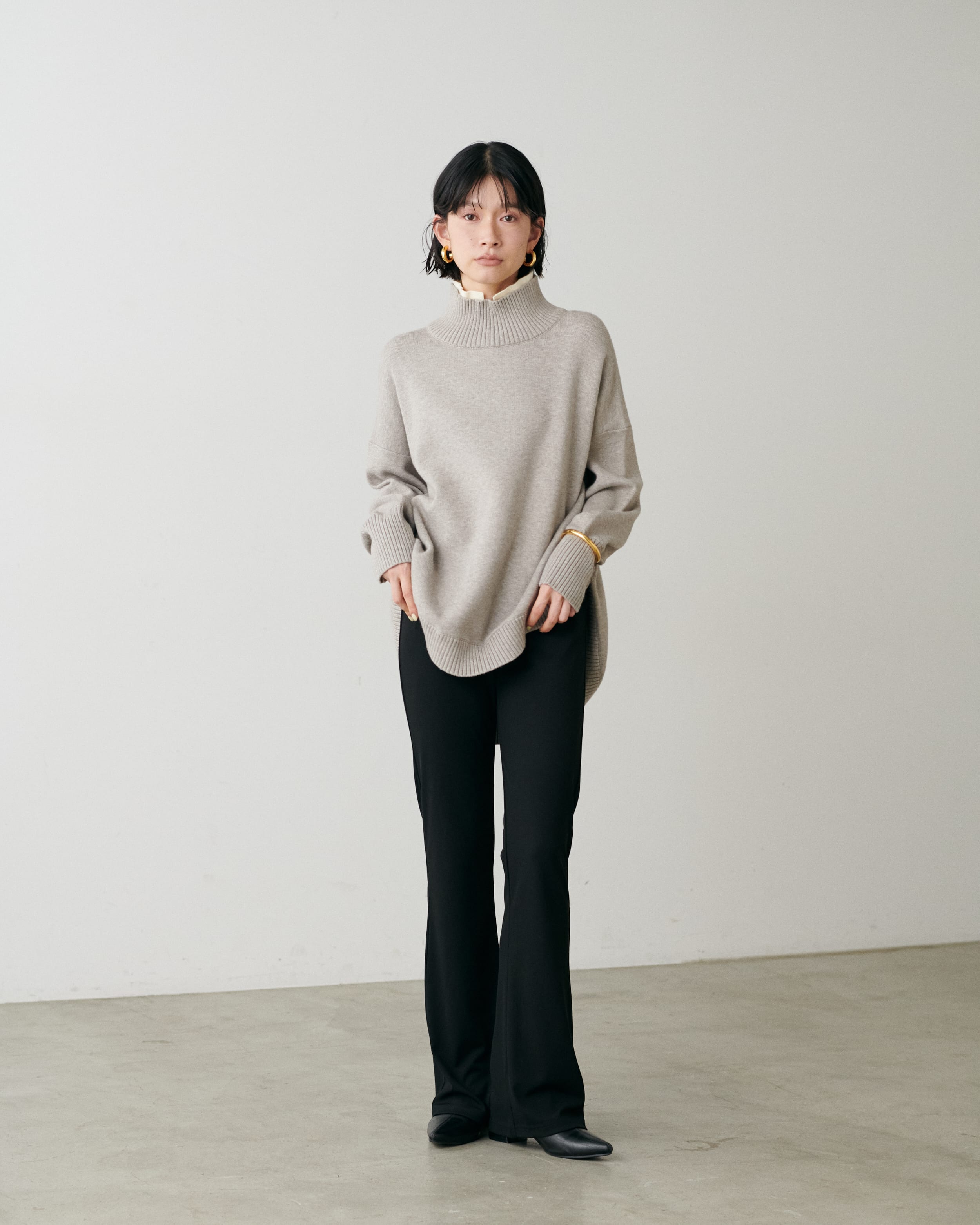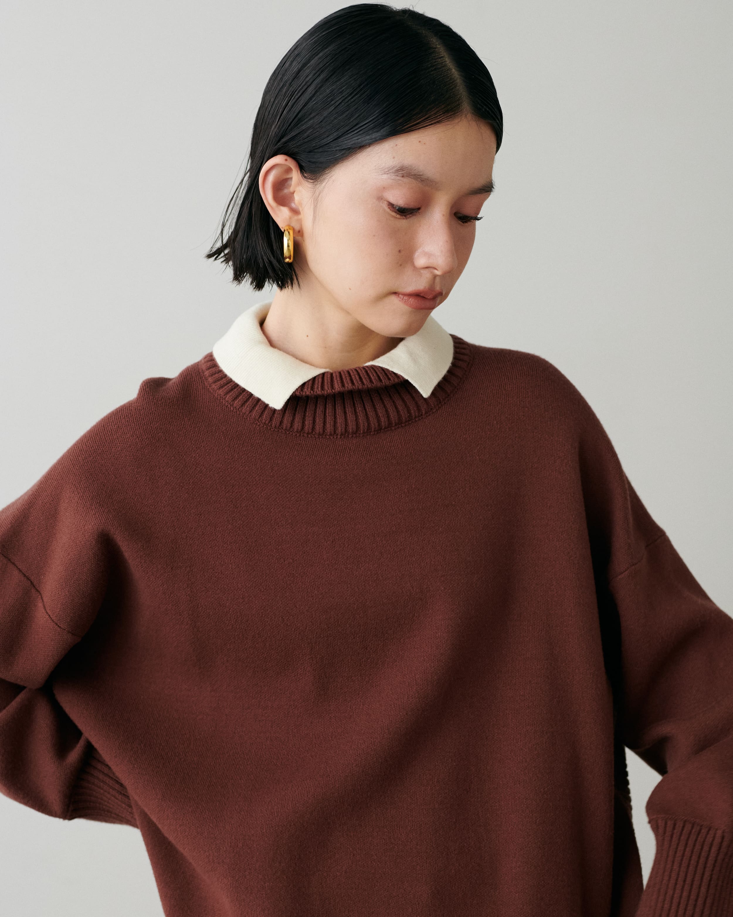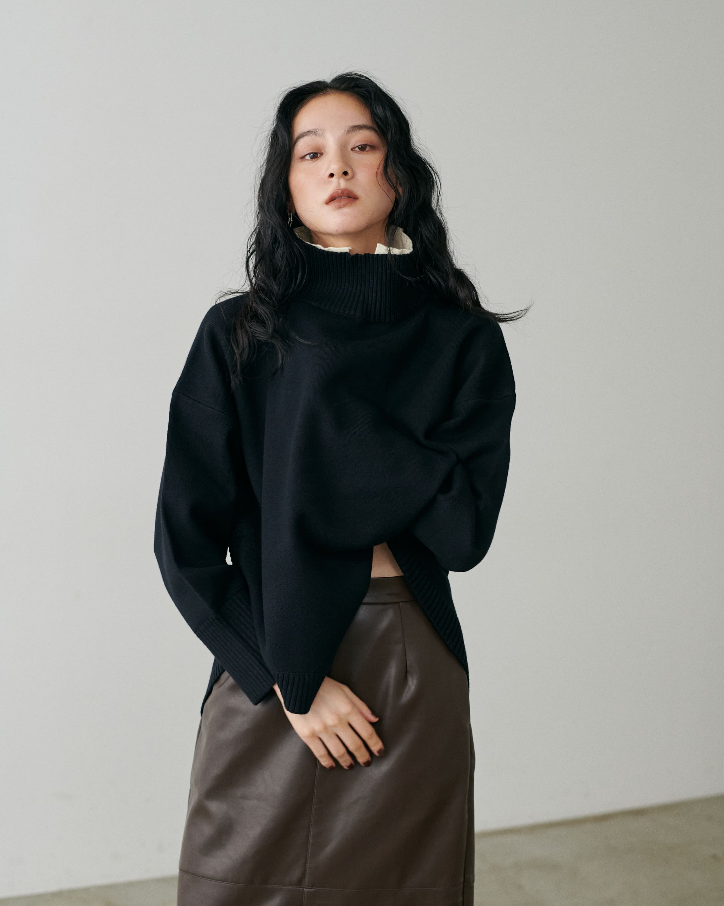 ラウンドヘム2枚衿ニット