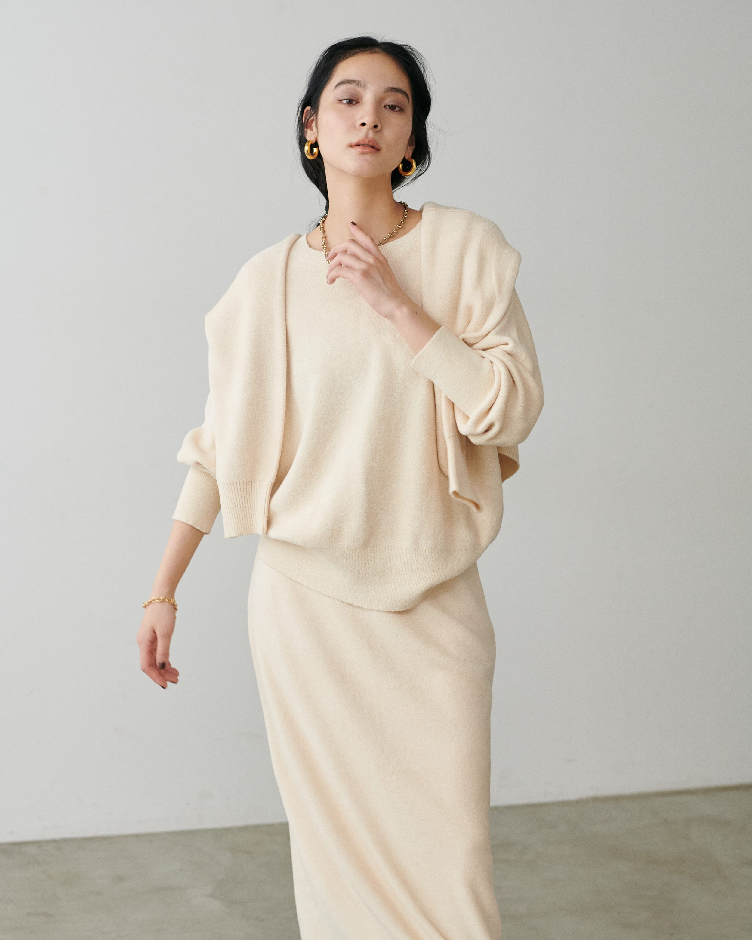 アクセサリーやカットソーも、スタイリングの幅を広げてくれるラインナップに。