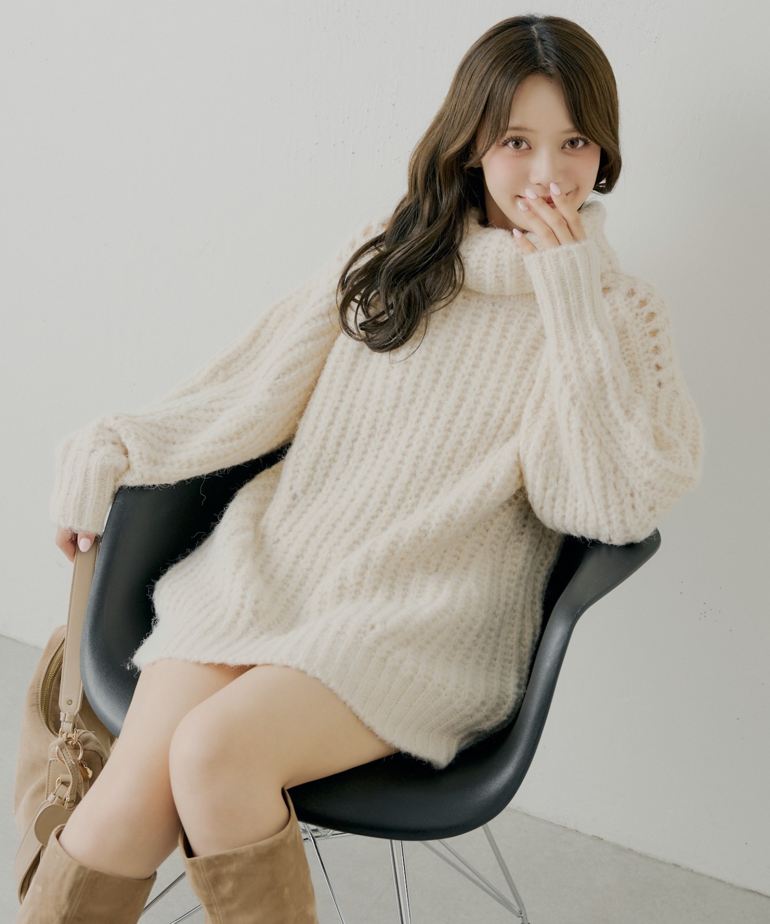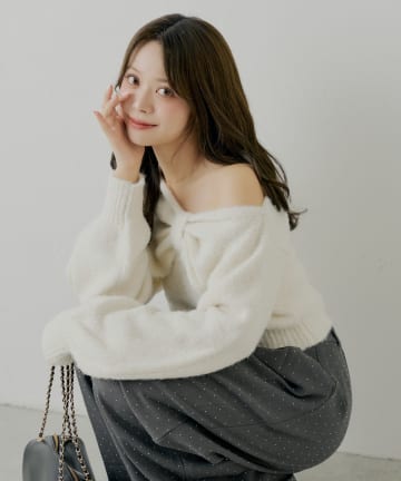 - ケーブルVルーズニットワンピース -