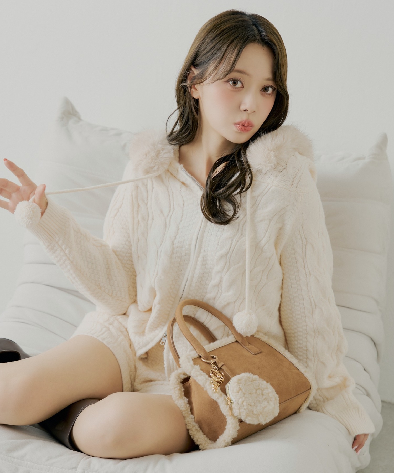 - フードケーブルミニニットワンピース -