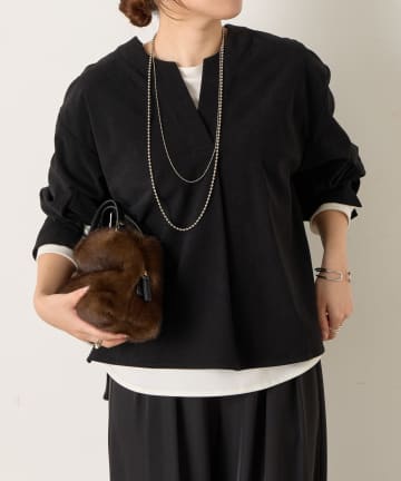 襟付きできちんと感があり、滑らかな生地が心地よく肌になじみます。 お袖はゴム仕様でラクに着れるのも嬉しいポイント。