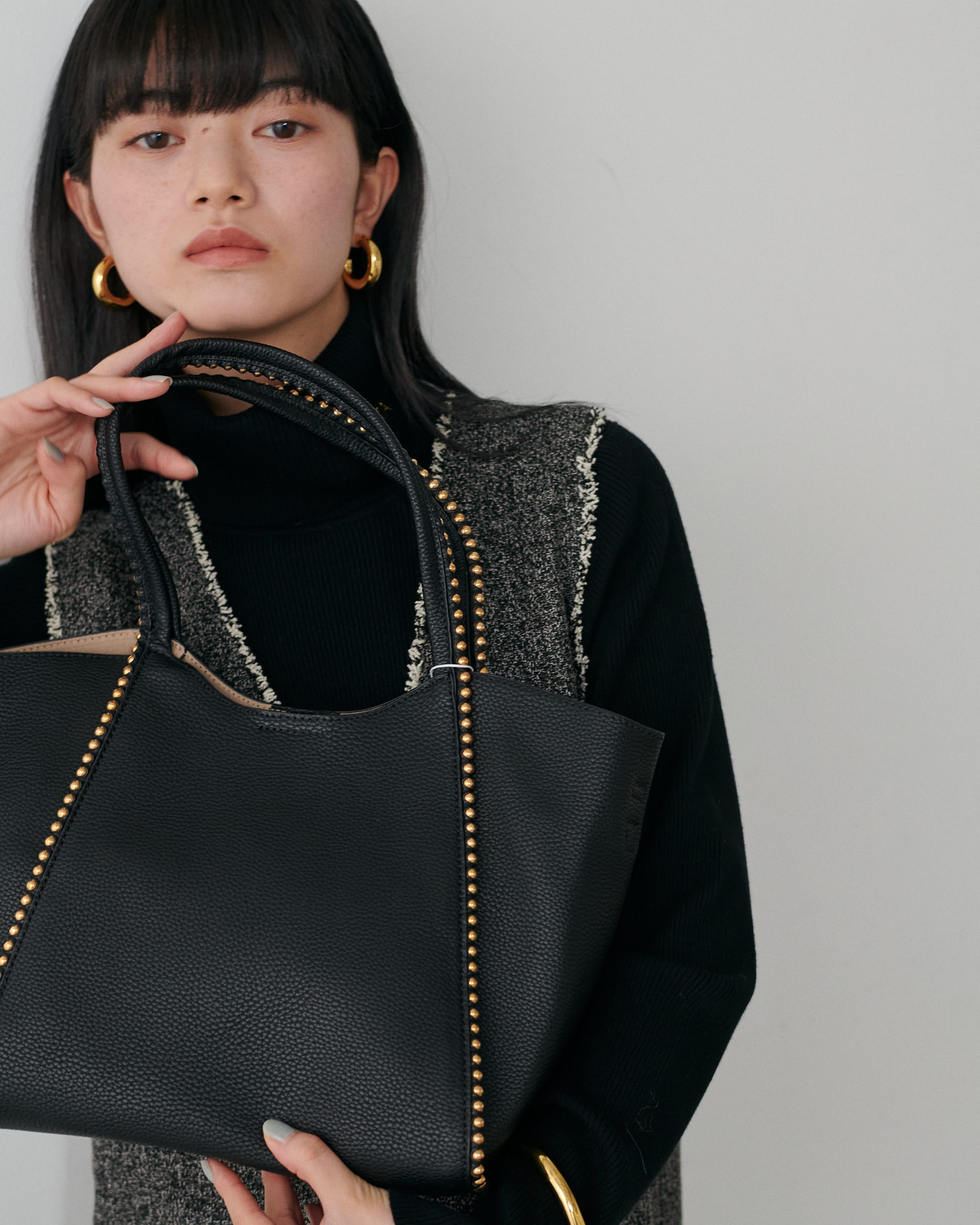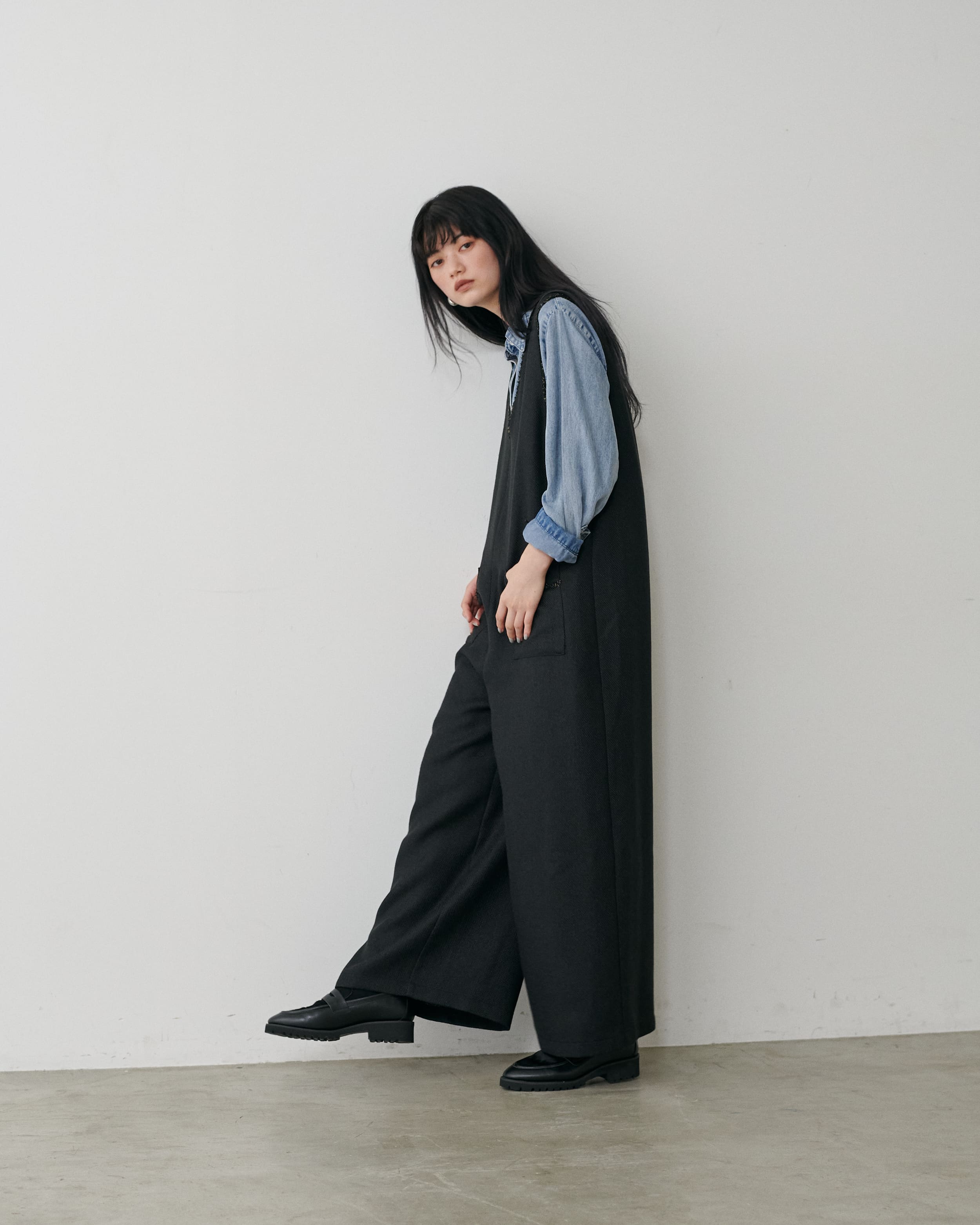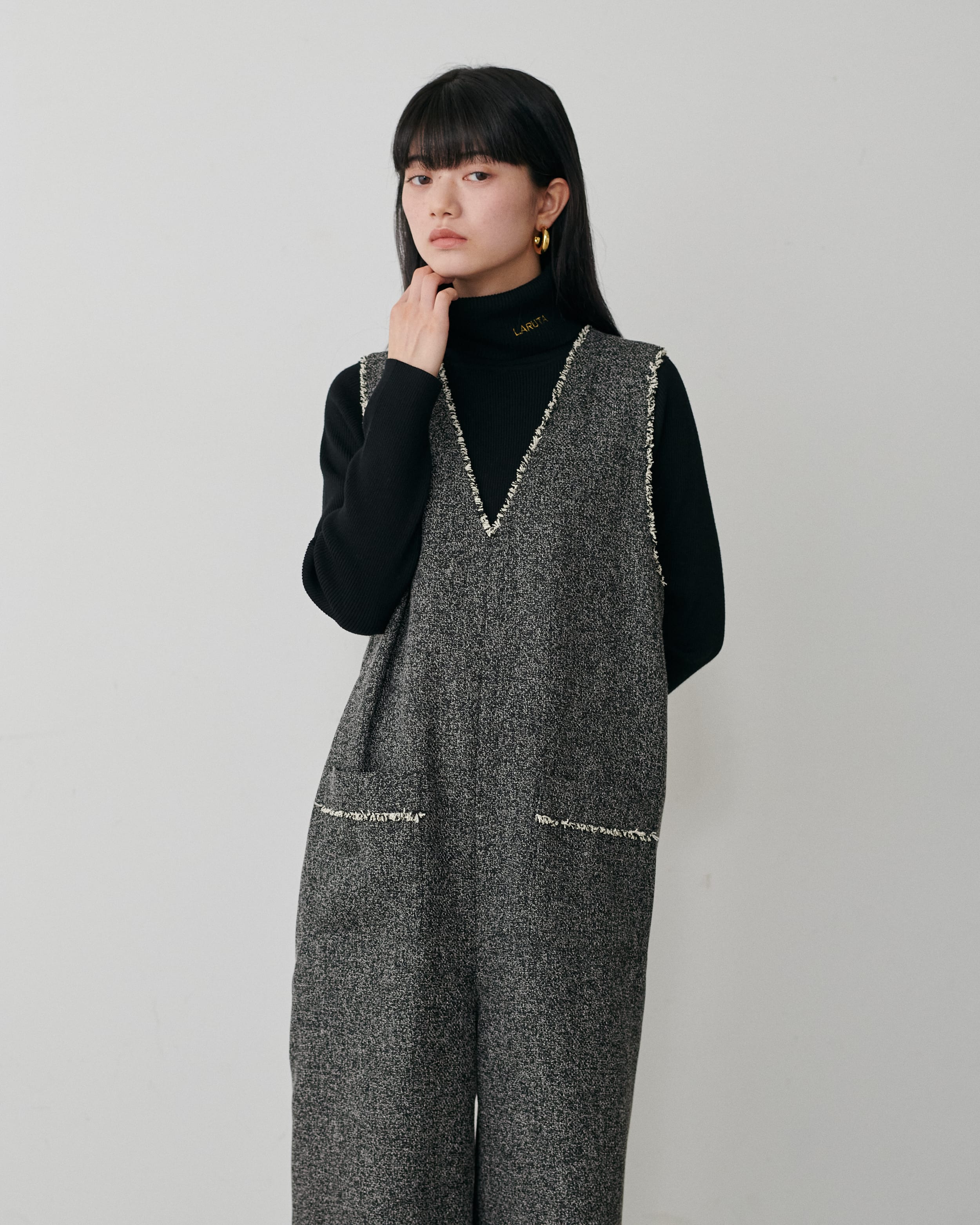 動きのあるツイードサロペットも、大人の抜け感を演出してくれます。