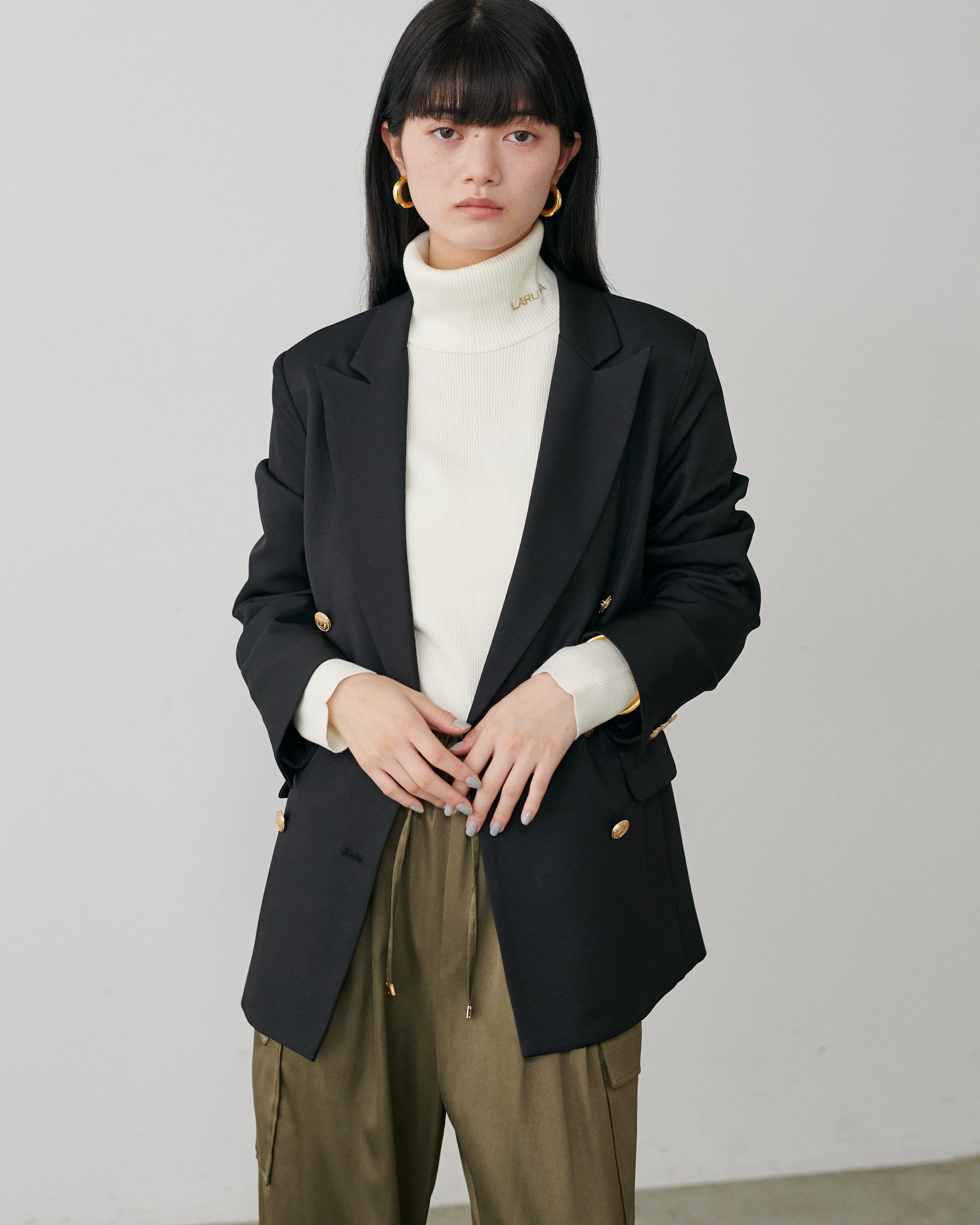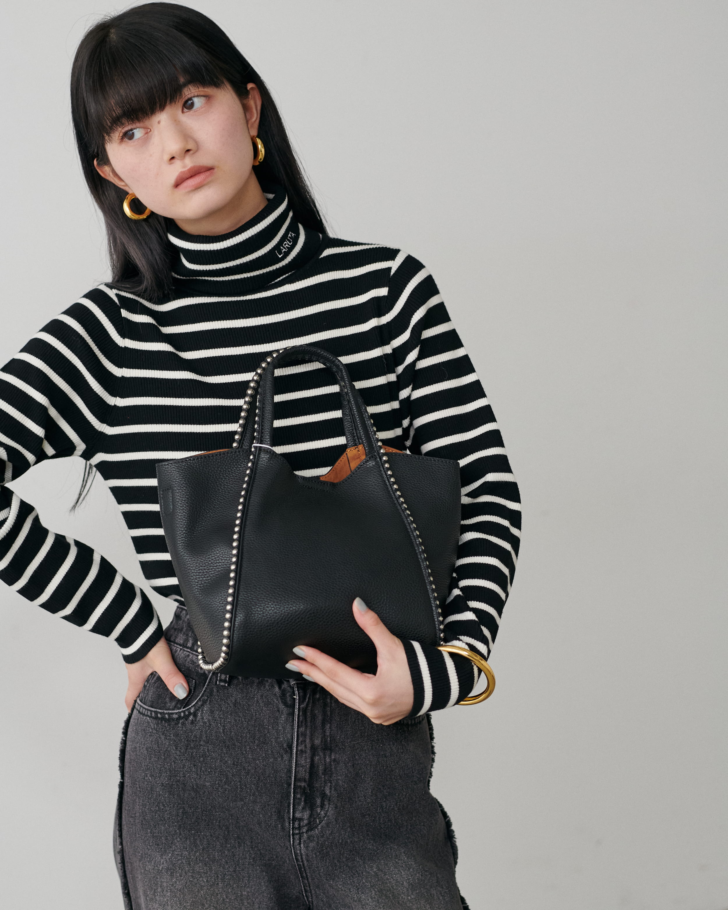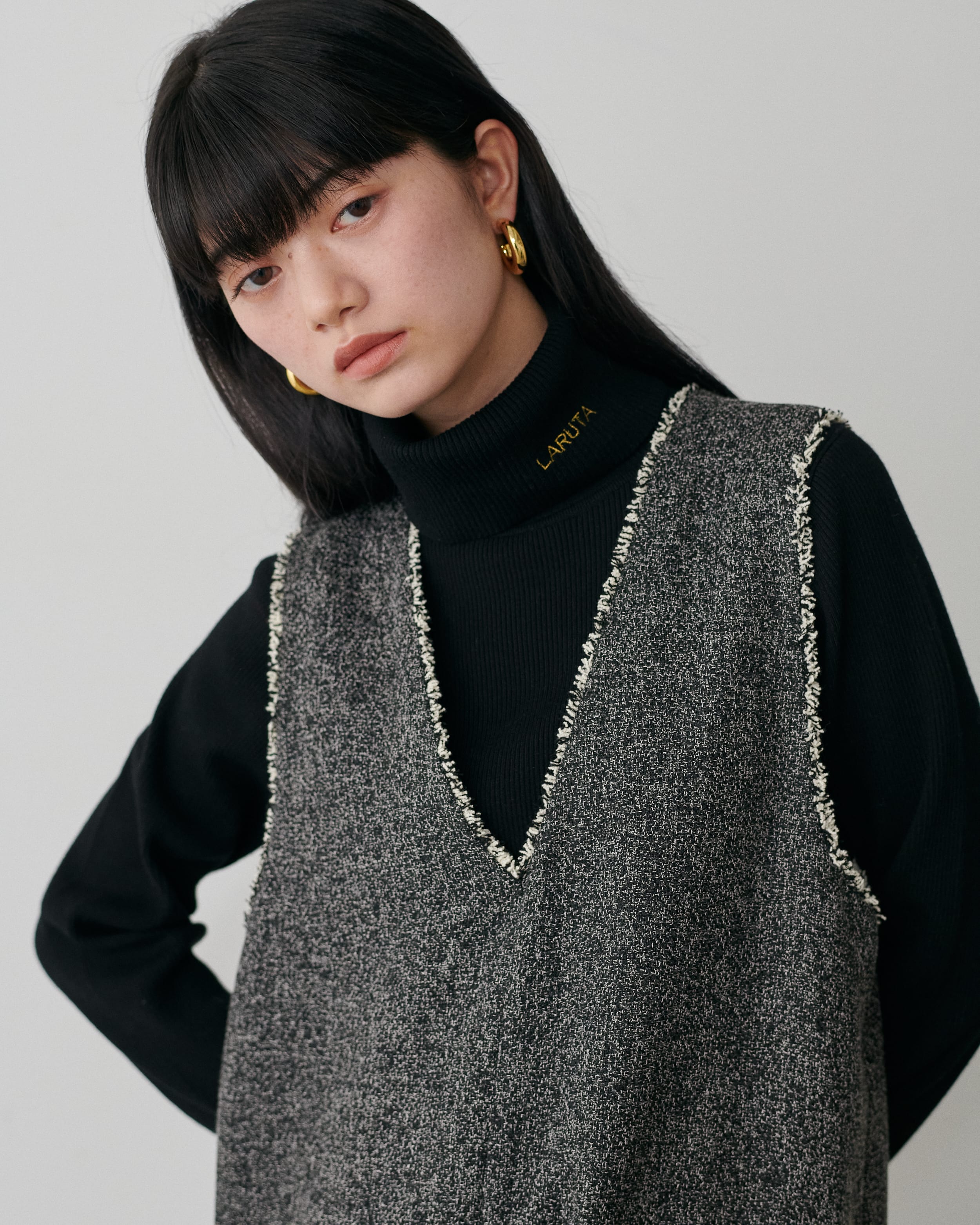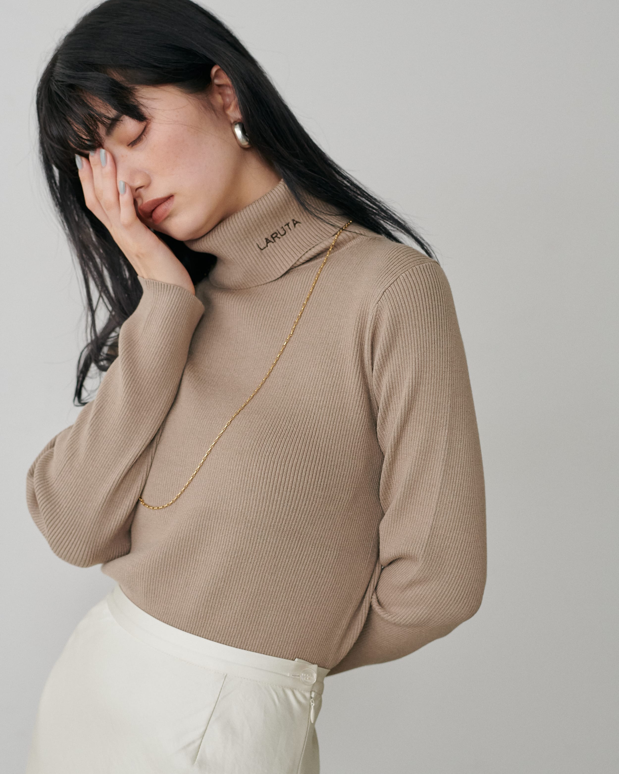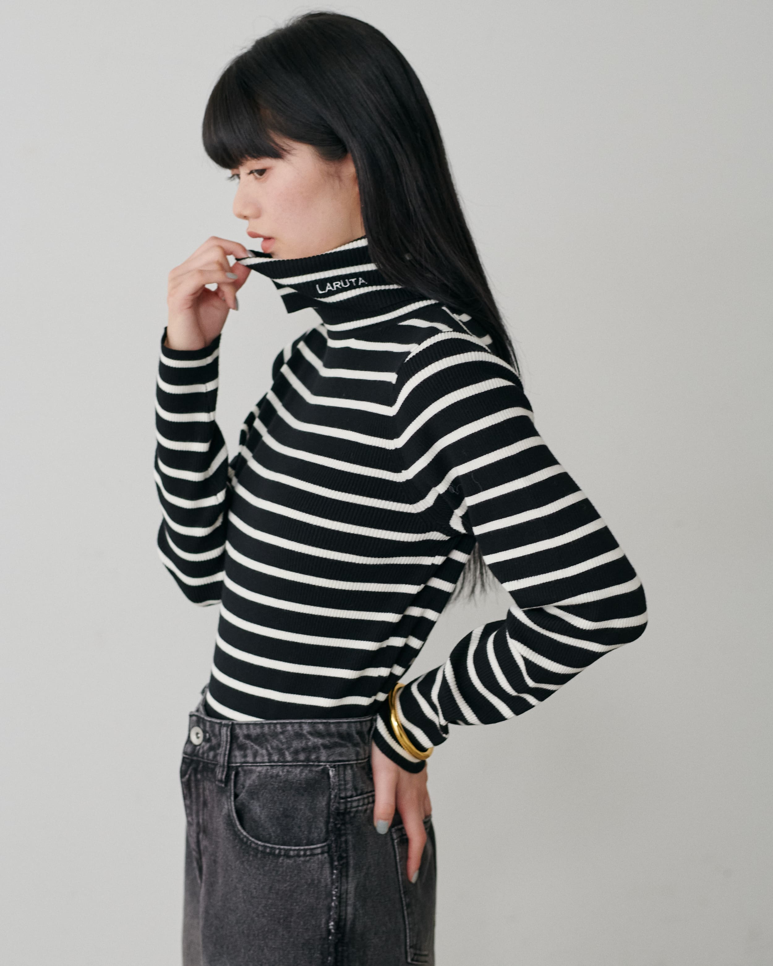 LARUTAロゴ刺繍入りリブタートル