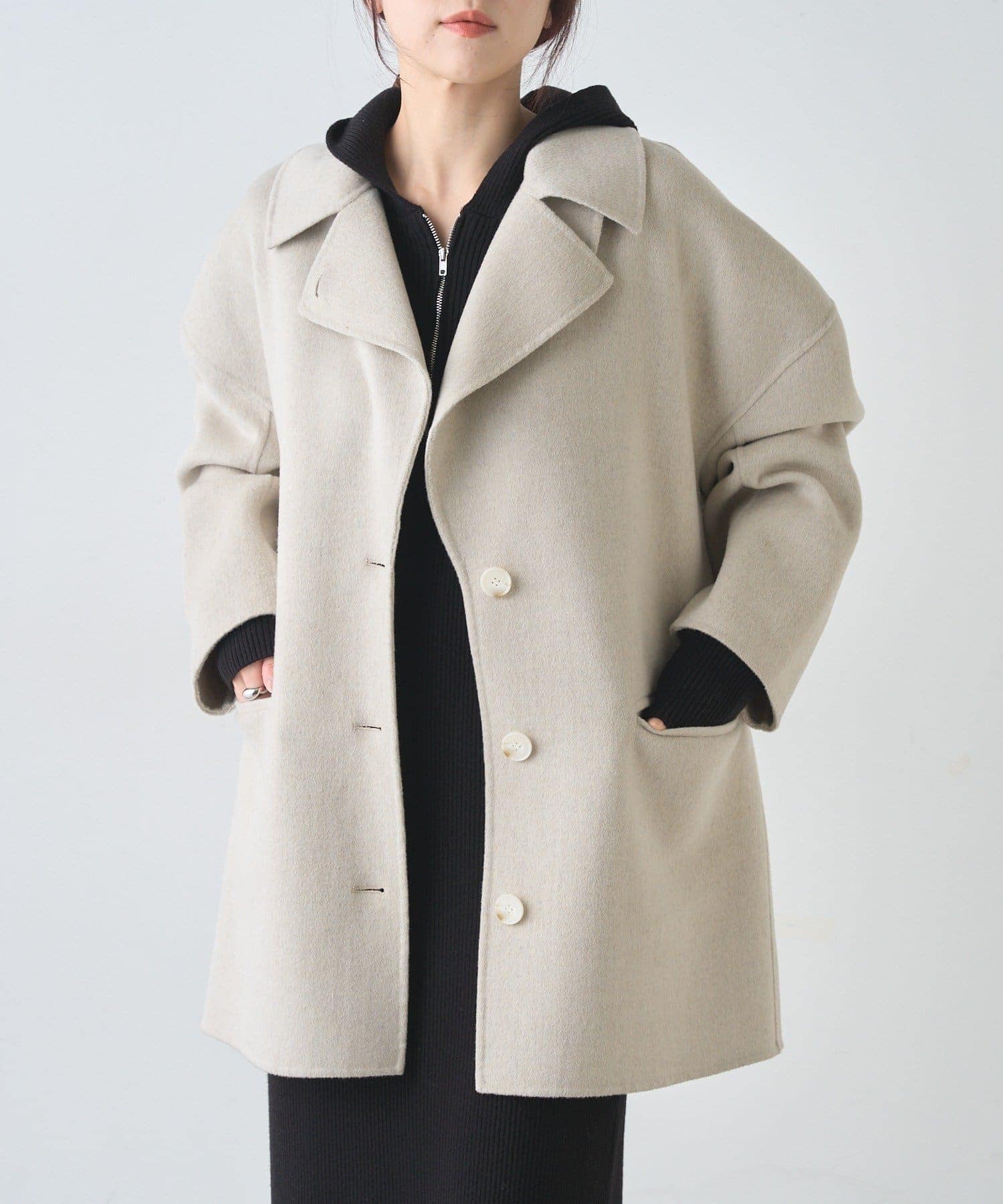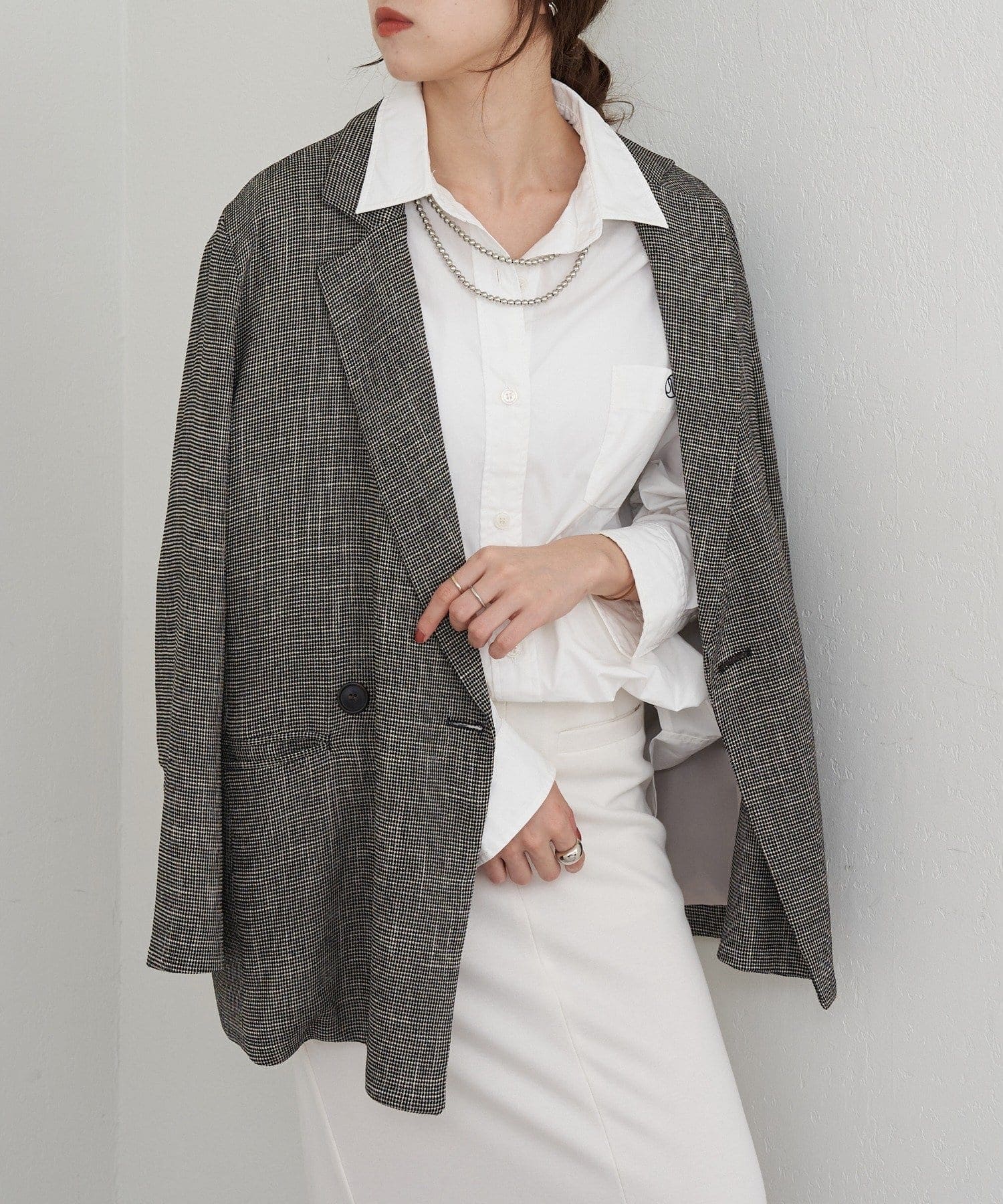 ダブル仕立てでメンズライクな雰囲気もありつつ、