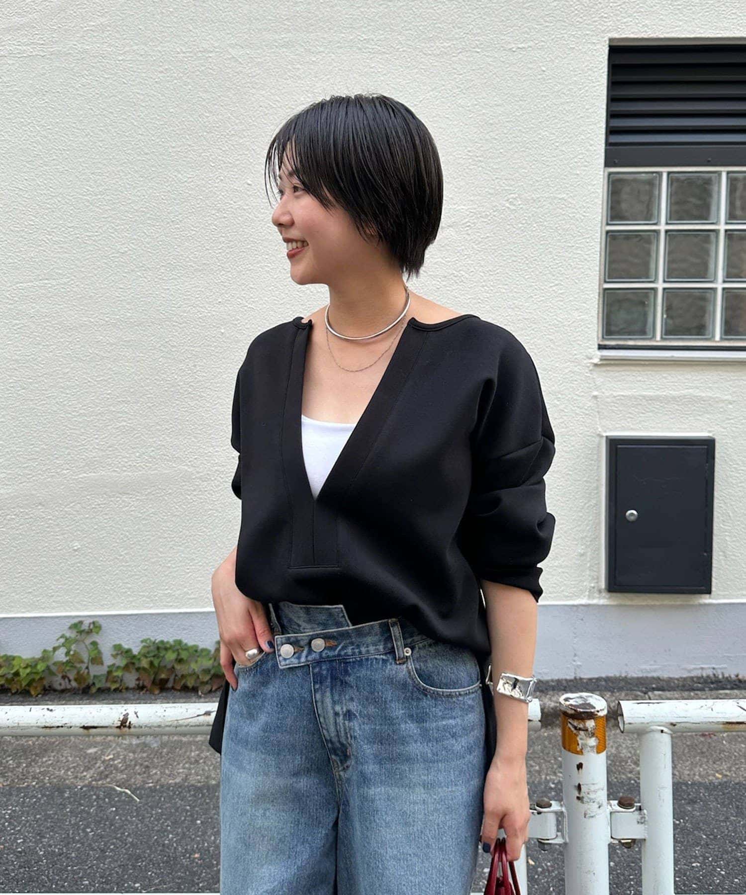 ワイドパンツやデニムなどカジュアルなボトムスと