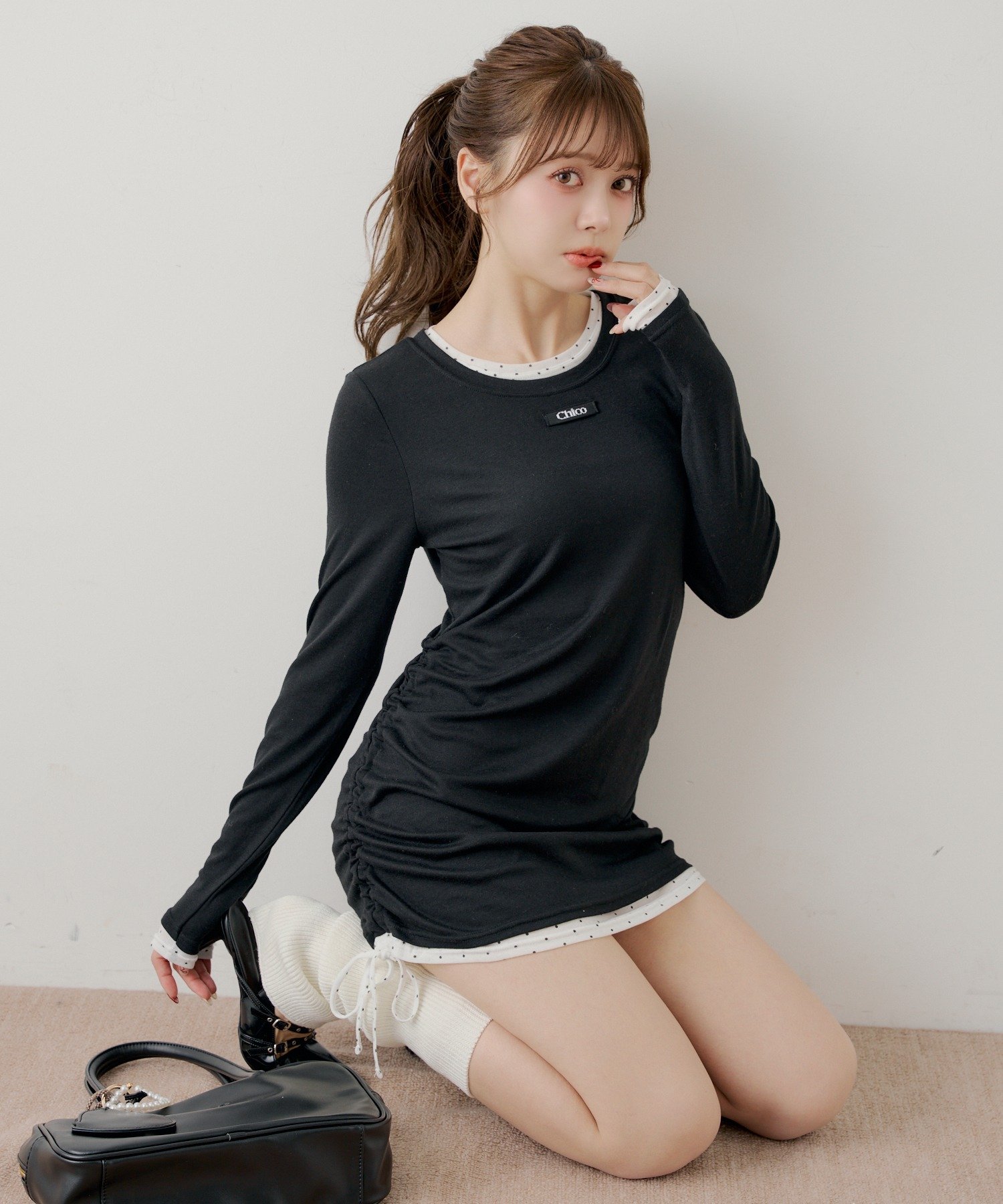-【セットアップ対応】レイヤードニットミニスカパン-