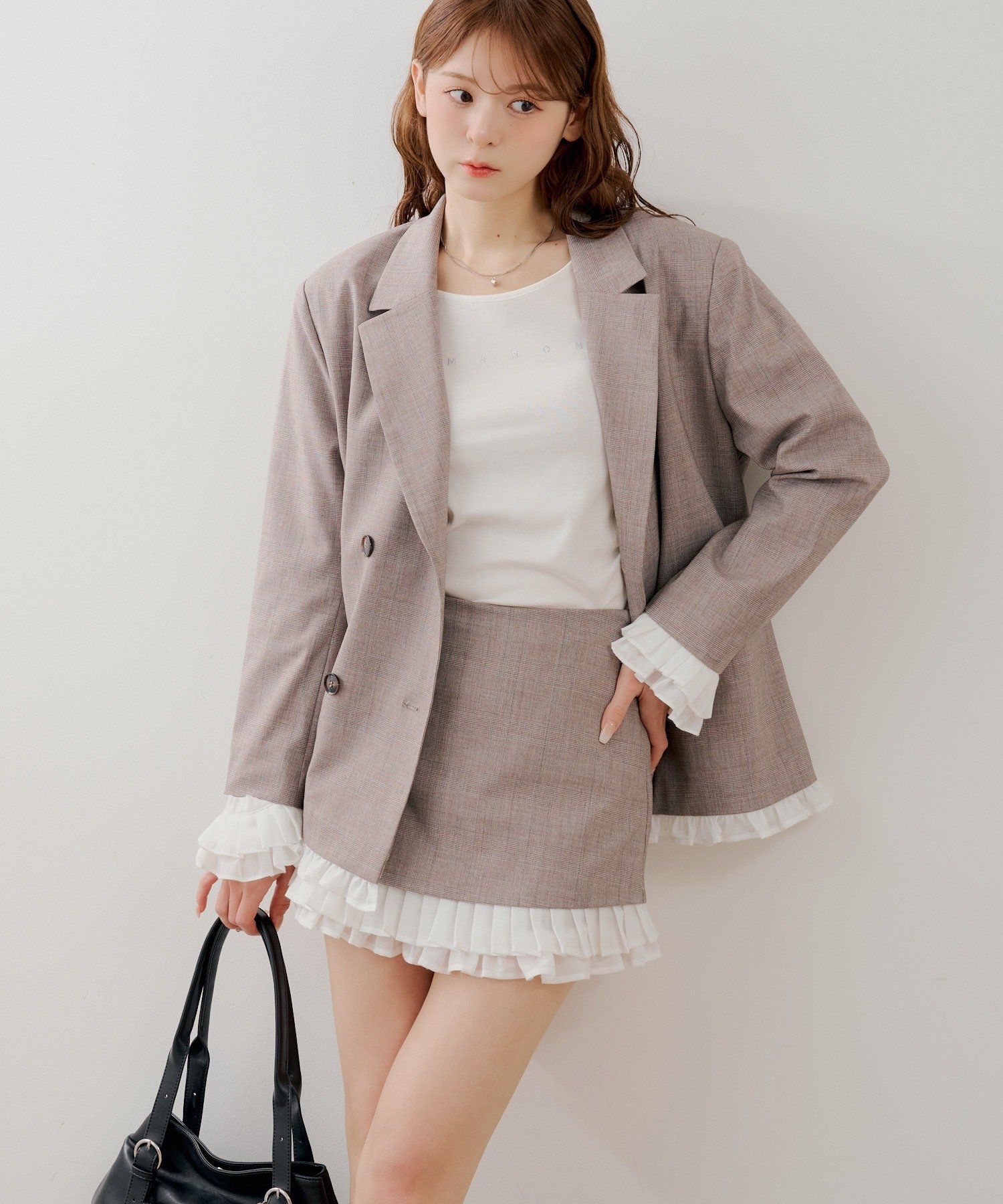 -【セットアップ対応】フリルレイヤードミニスカート-