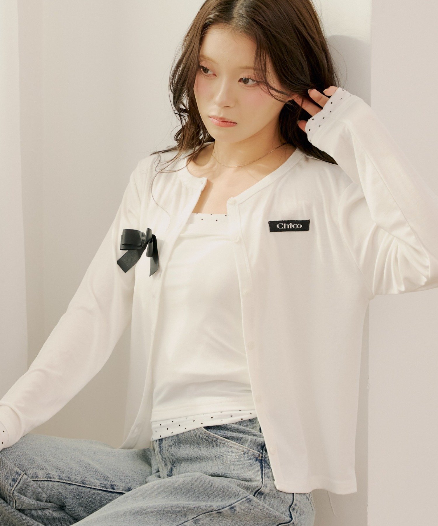 -【WEB限定カラーあり】リボンルーズカーディガン-