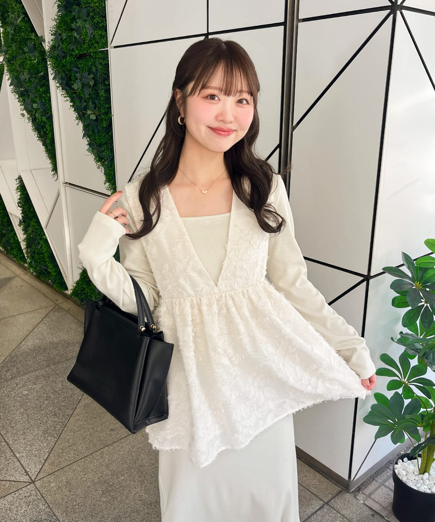 腕周りを華奢見せしてくれる程良いゆとりのアームラインは、 キャンディスリーブデザインに仕立て、大人レディな印象に仕上げました。ややシアー感のある生地を採用。
