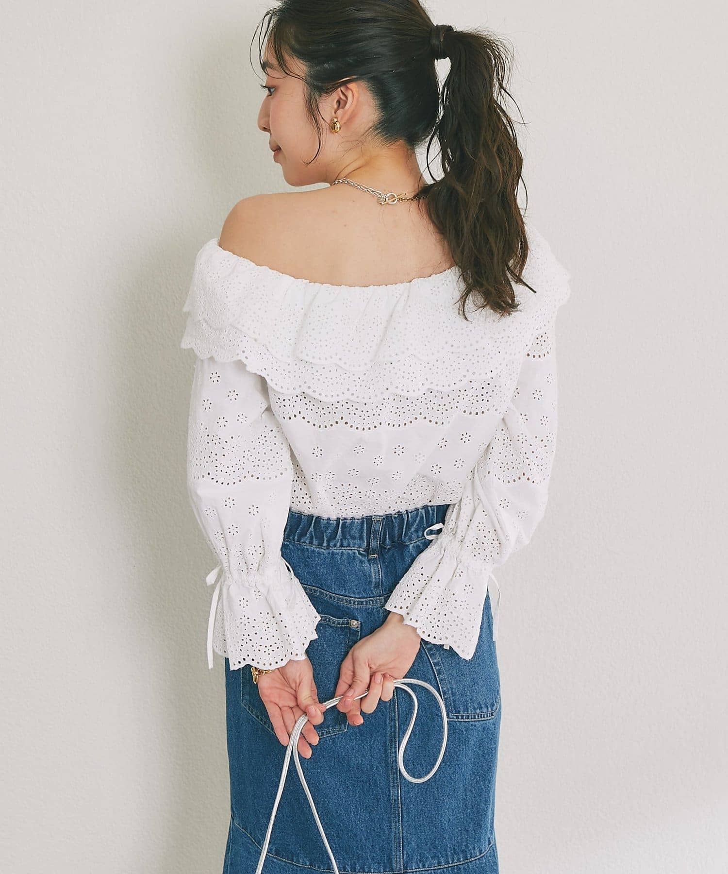 スカラップレースワンショルブラウス