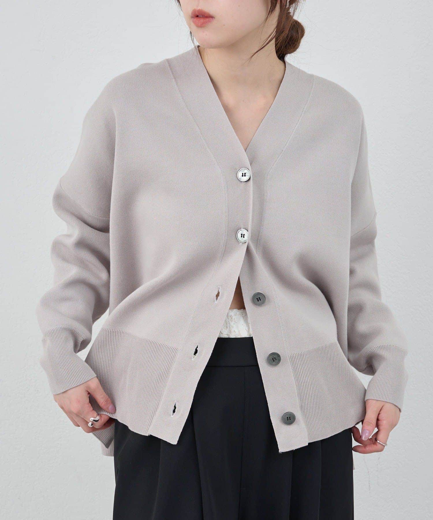春の羽織りに最適なニットカーディガン。