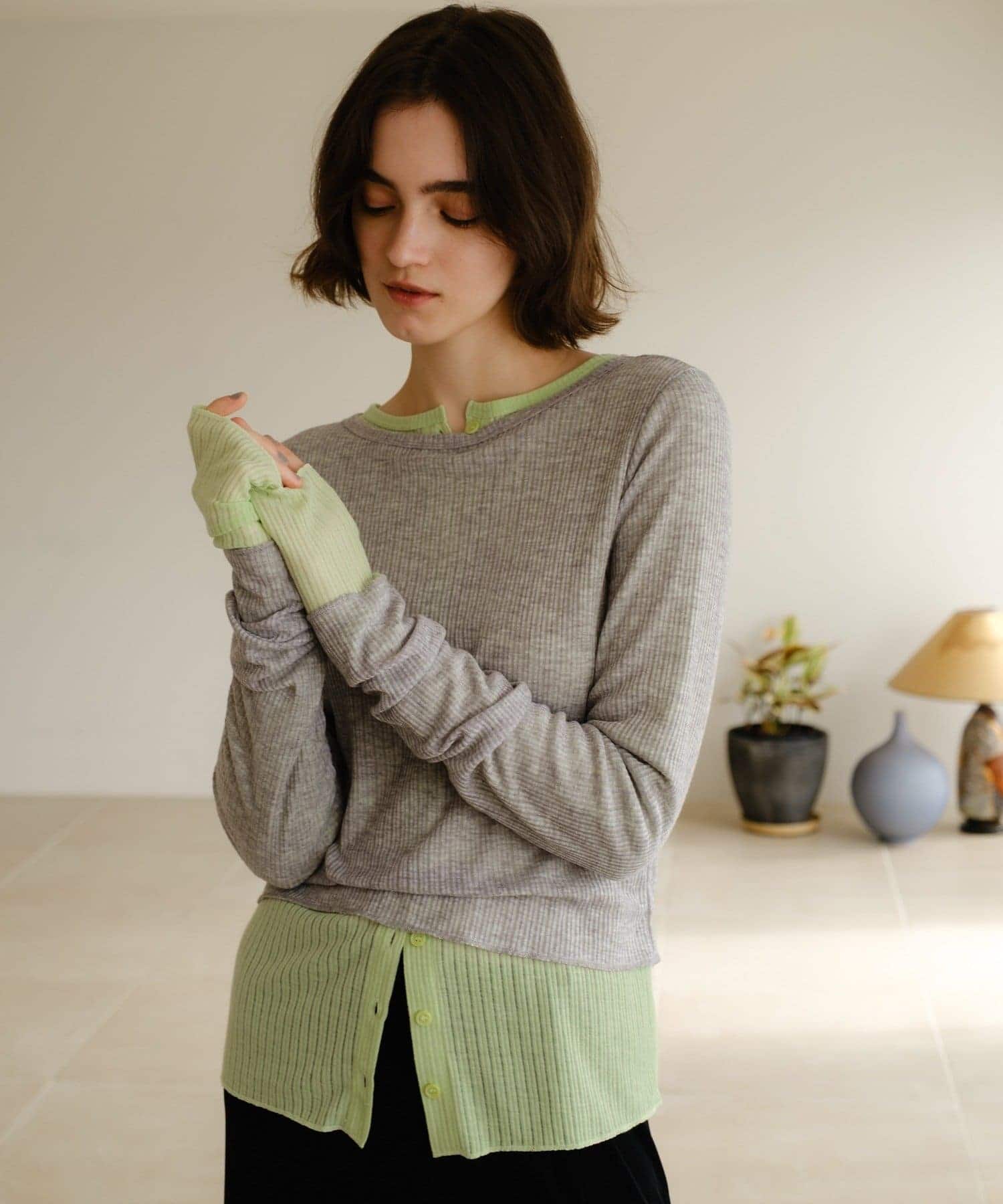 重ねると裾や袖の配色を楽しんでいただけます。