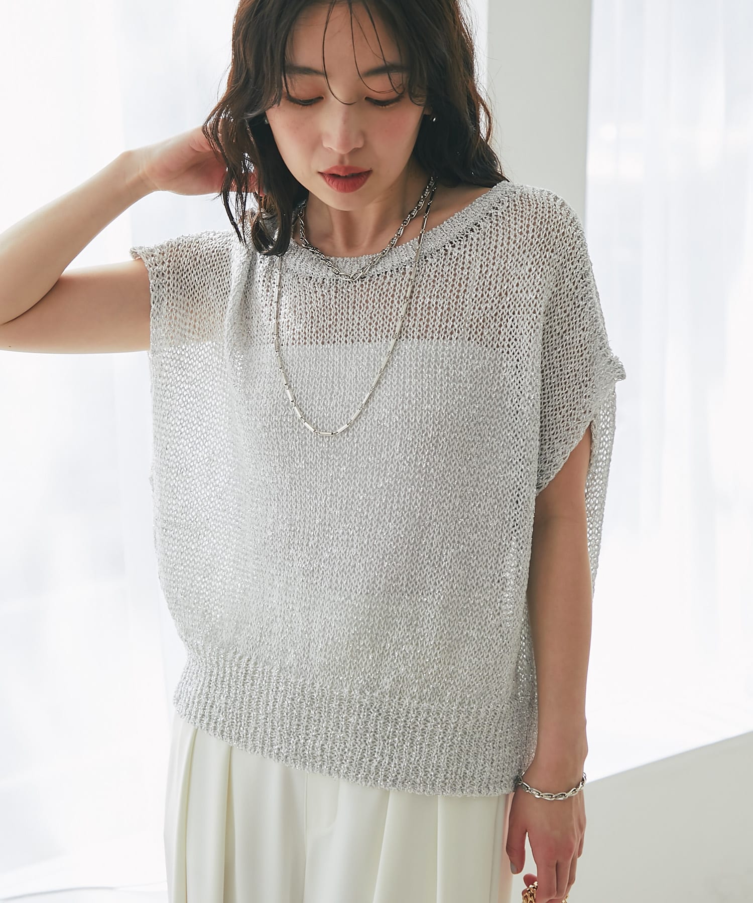 ラメ天竺針抜きフレンチニット