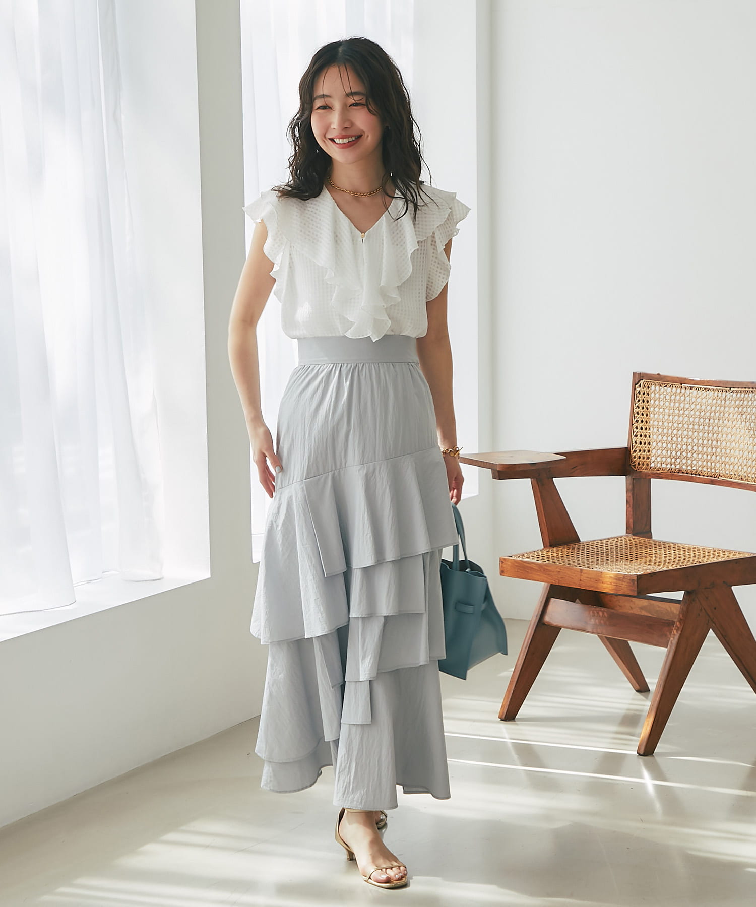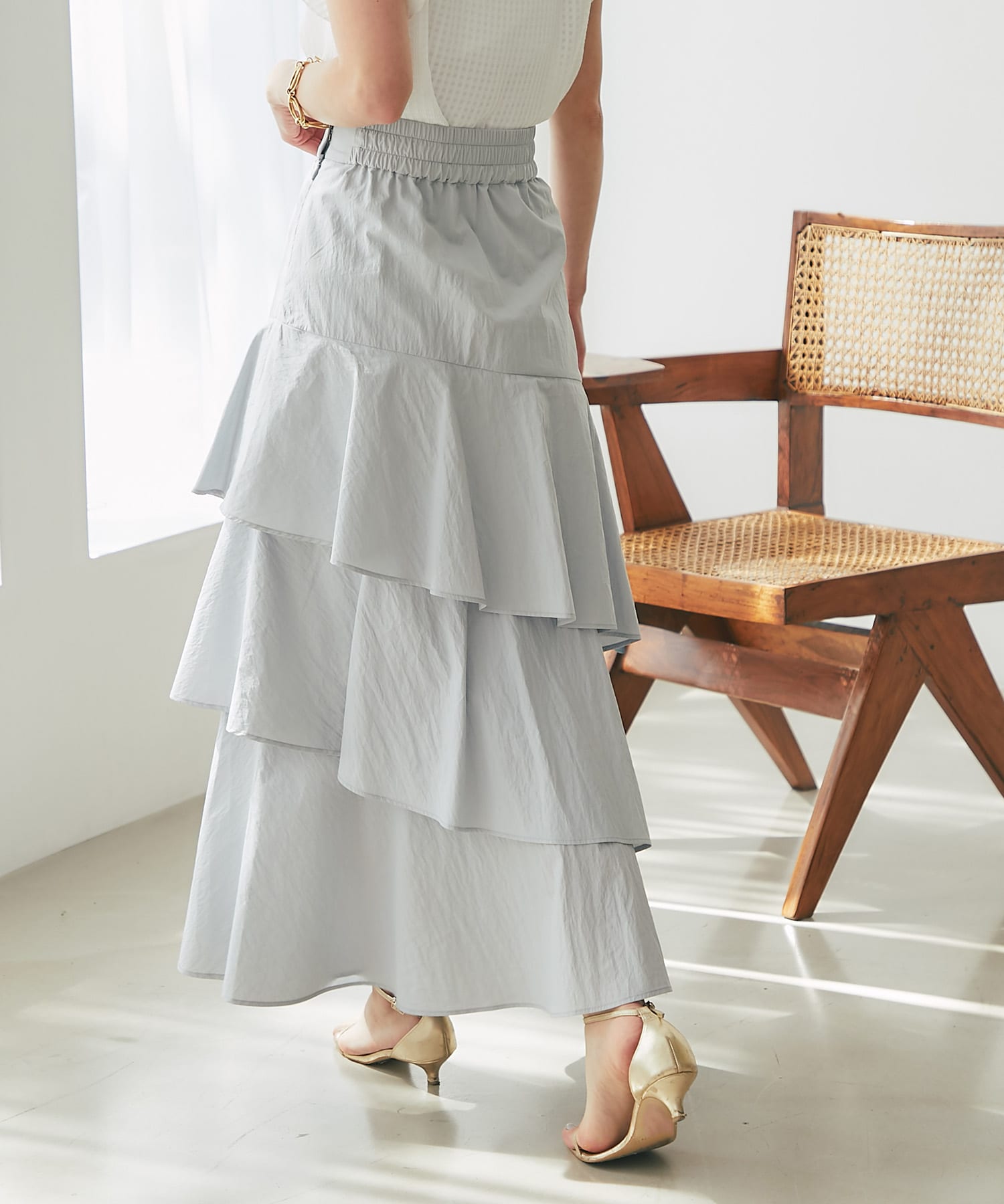 コットンナイロンイレヘムティアードスカート