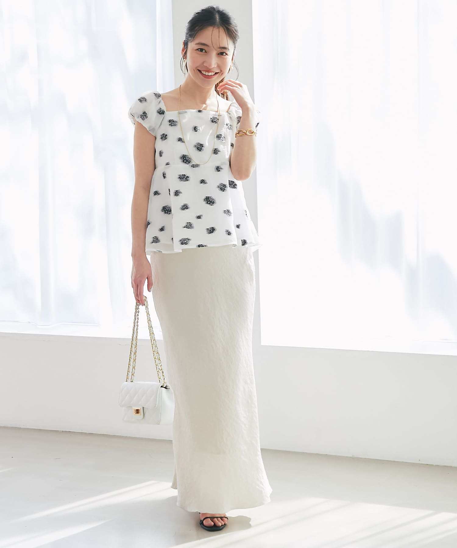 小花ラメジャガードペプラムブラウス