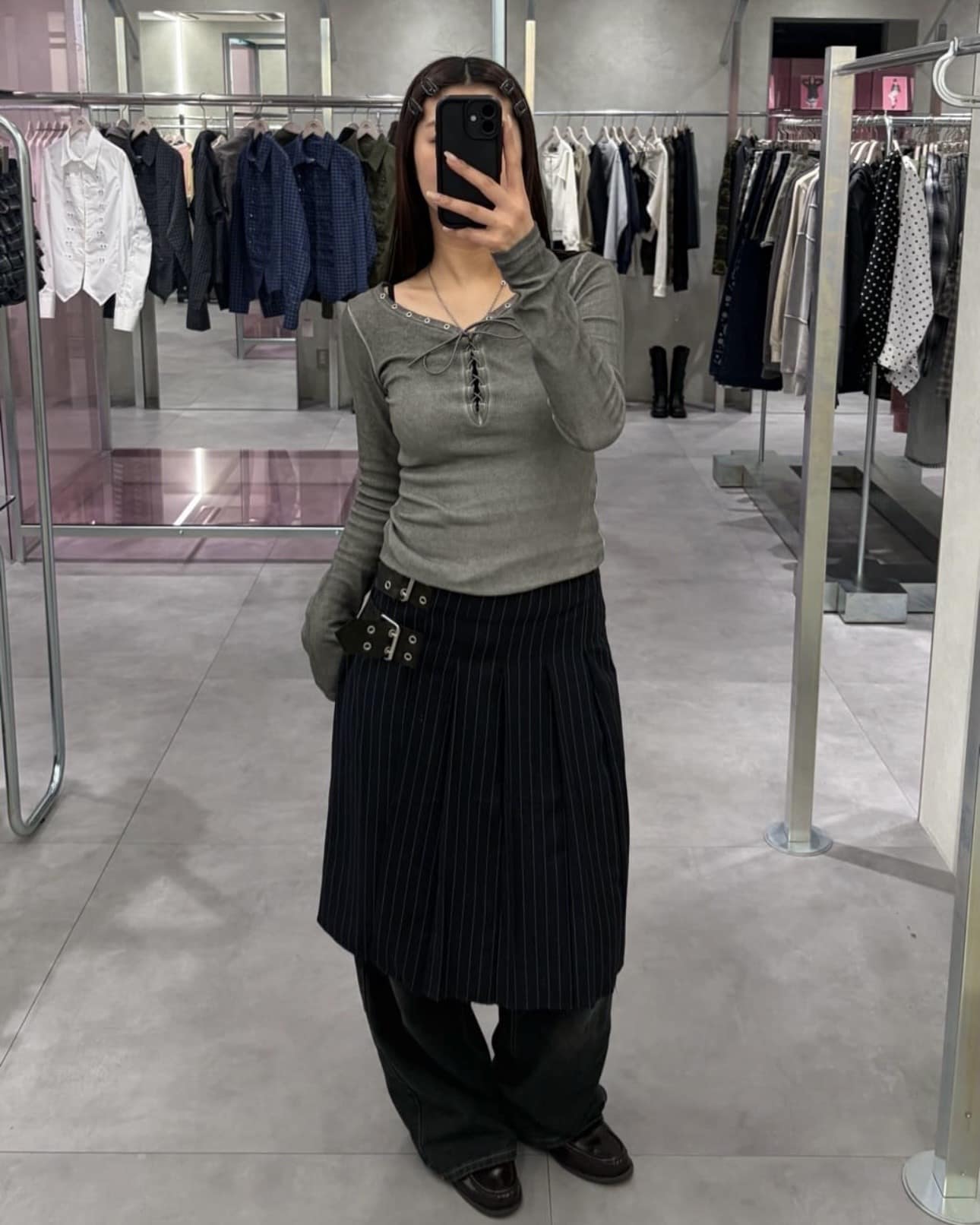 ・ダブルベルトミディプリーツスカート
