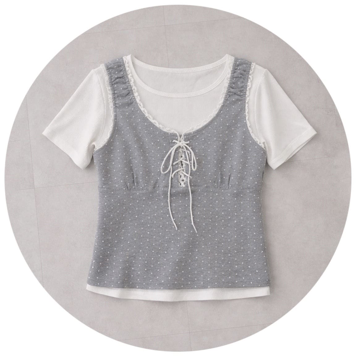 繊細なドット柄にゆるやかなウェーブ刺繍を
