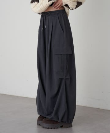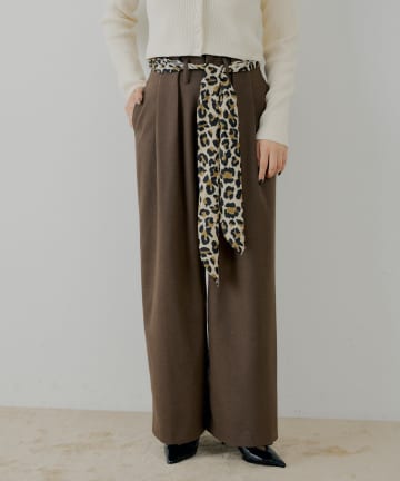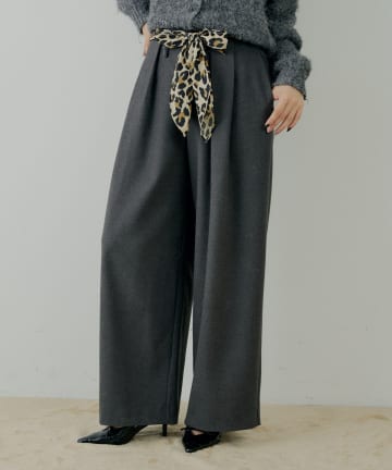 【Chico】スカーフベルト付きダブルタックウールスラックス