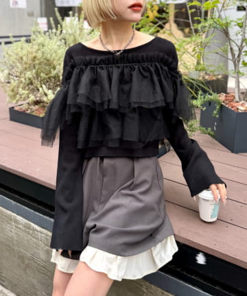 【Kastane】ペプラムチュール×レースアップワンピースSET