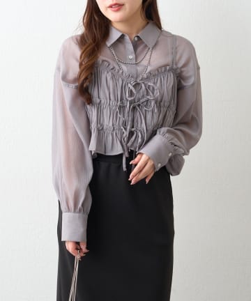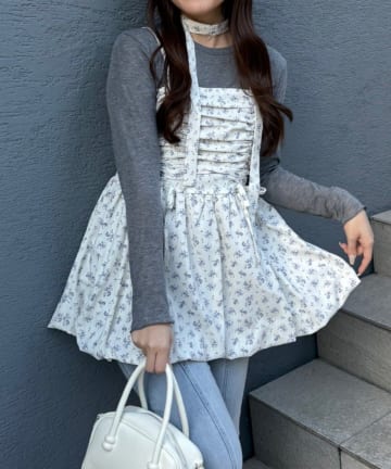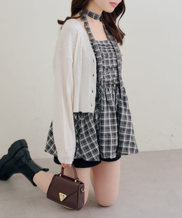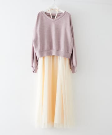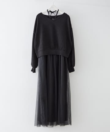 【2枚SET】Vネックニット+チュールキャミワンピース