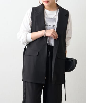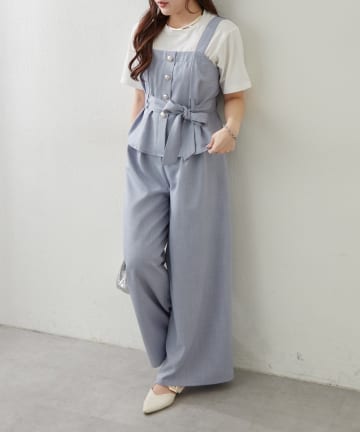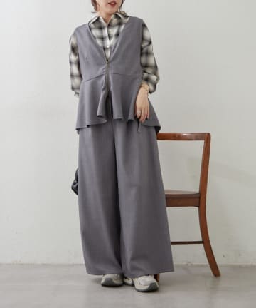 【上下2枚SET】WZIPペプラムジレ&ワイドパンツ