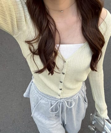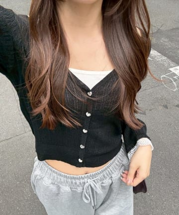 【chipiセレクト】ハートボタン袖レースラメカーデ