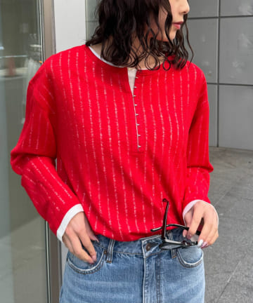 【2WAY】針抜きシアーホックヘンリートップス